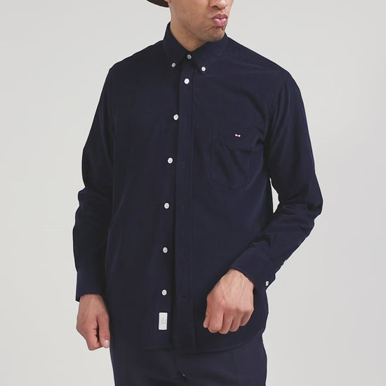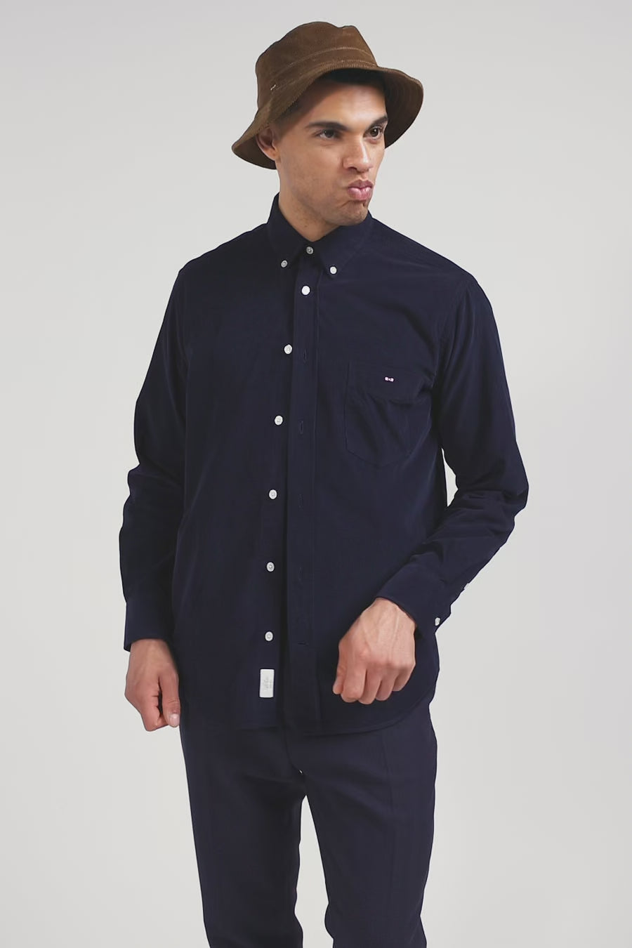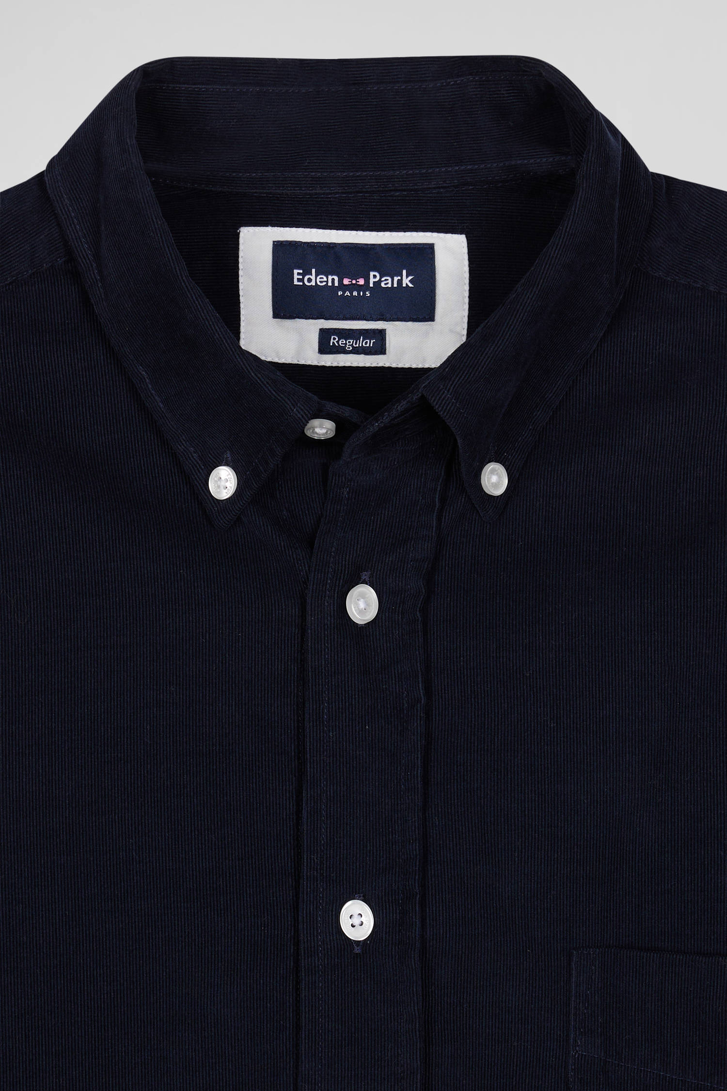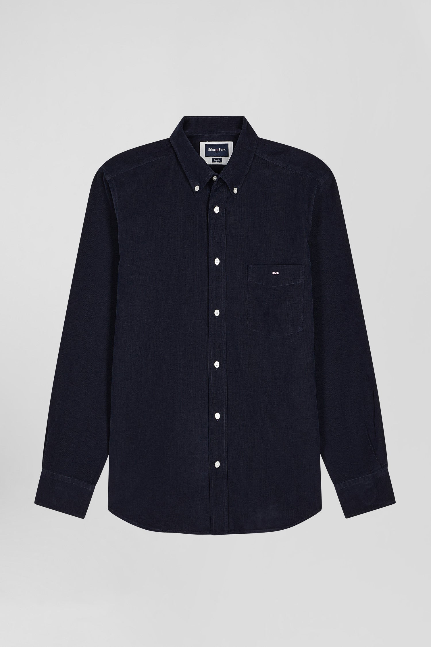 Navy corduroy shirt with button-down collar and regular-fit breast pocket