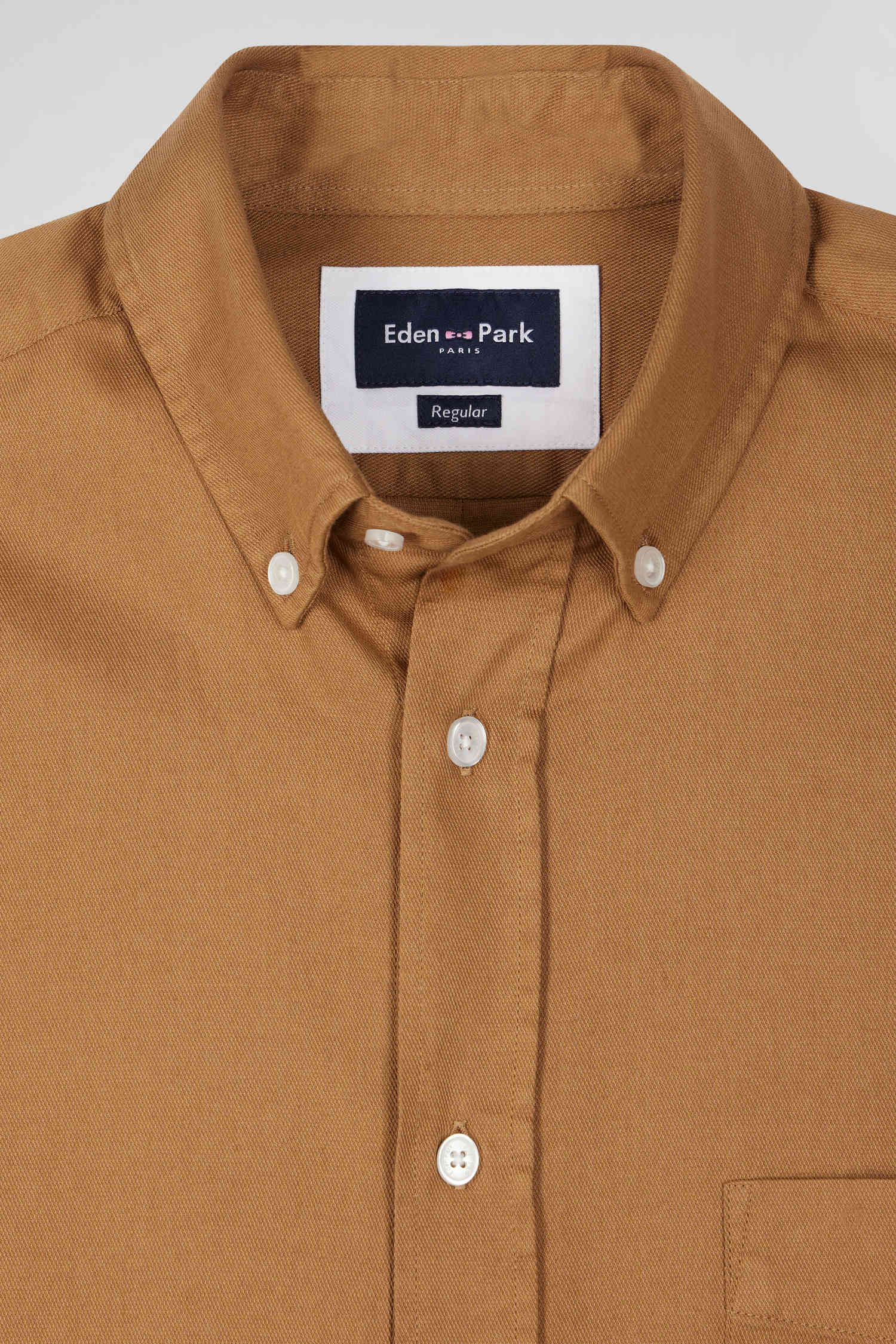 Plain hazelnut cotton piqué shirt Regular fit