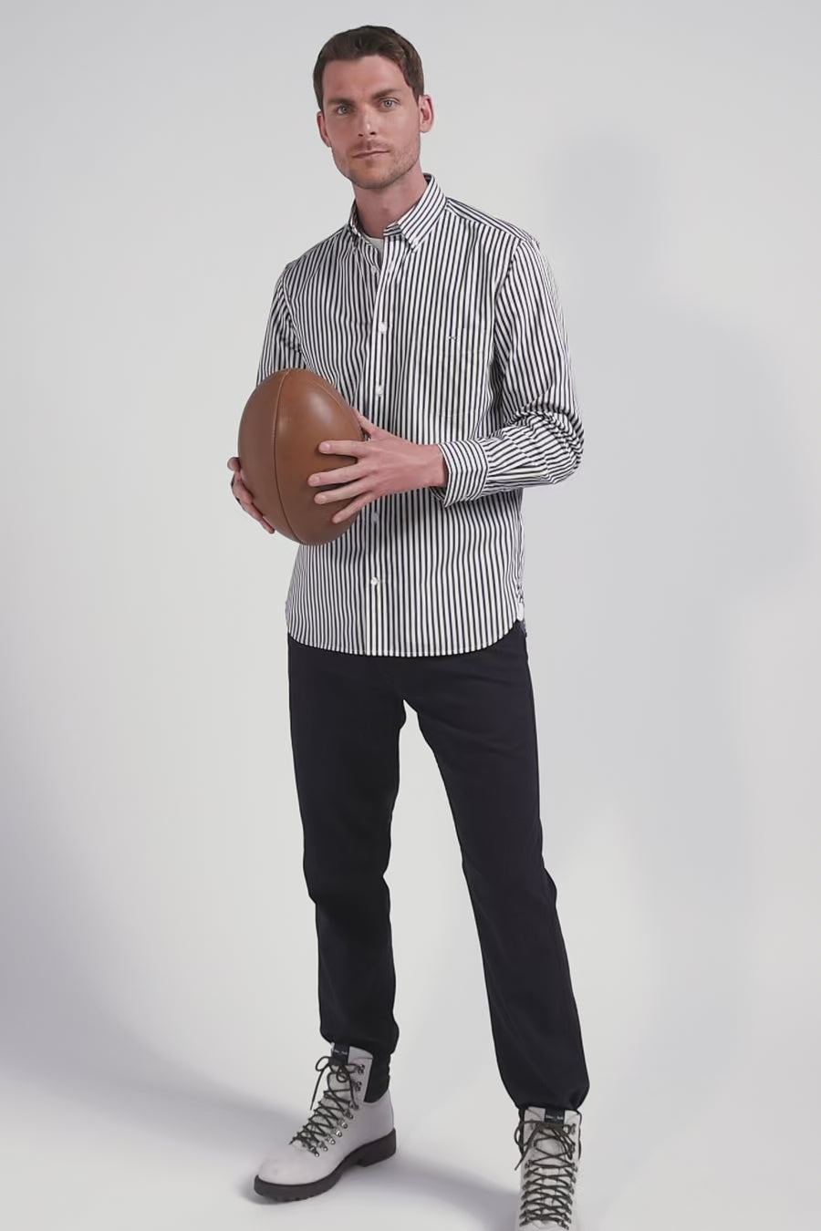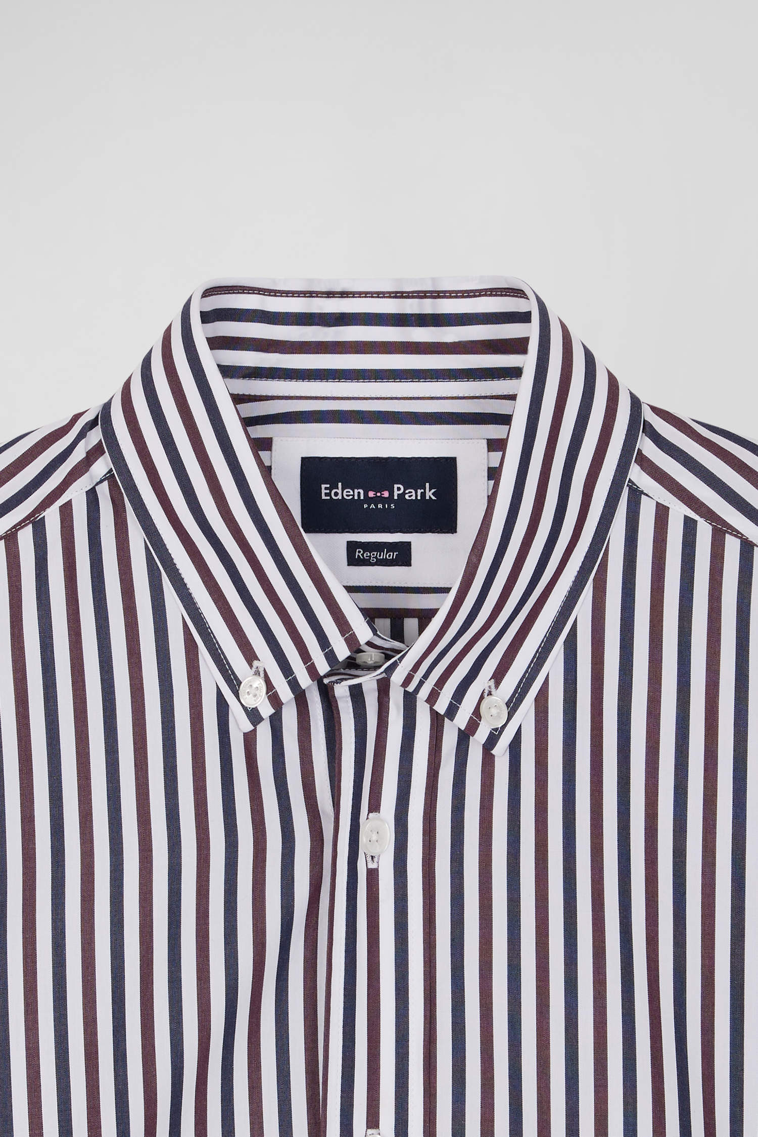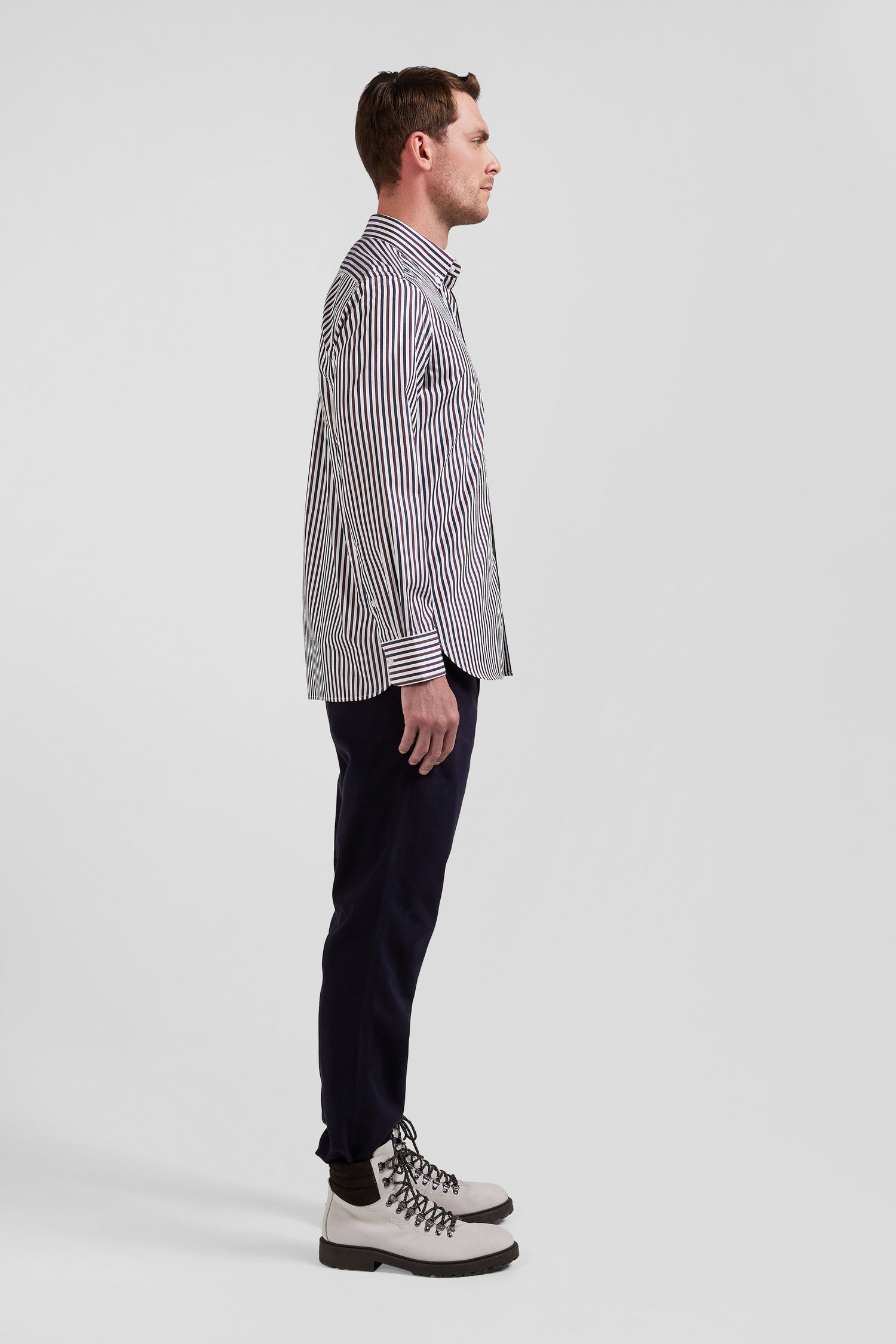 Our striped cotton poplin shirt is designed to fit any figure thanks to its regular straight cut. Its two-tone stick stripes will add a dynamic touch to your outfit. The buttoned point collar provides impeccable support, while the back pleat gives you extra ease of movement. The bowtie embroidery on the chest pocket adds a subtle touch of elegance to this men's shirt. This modern take on a classic comes in a wide range of colors for the season, and pairs equally well with our chino pants or straight jeans.