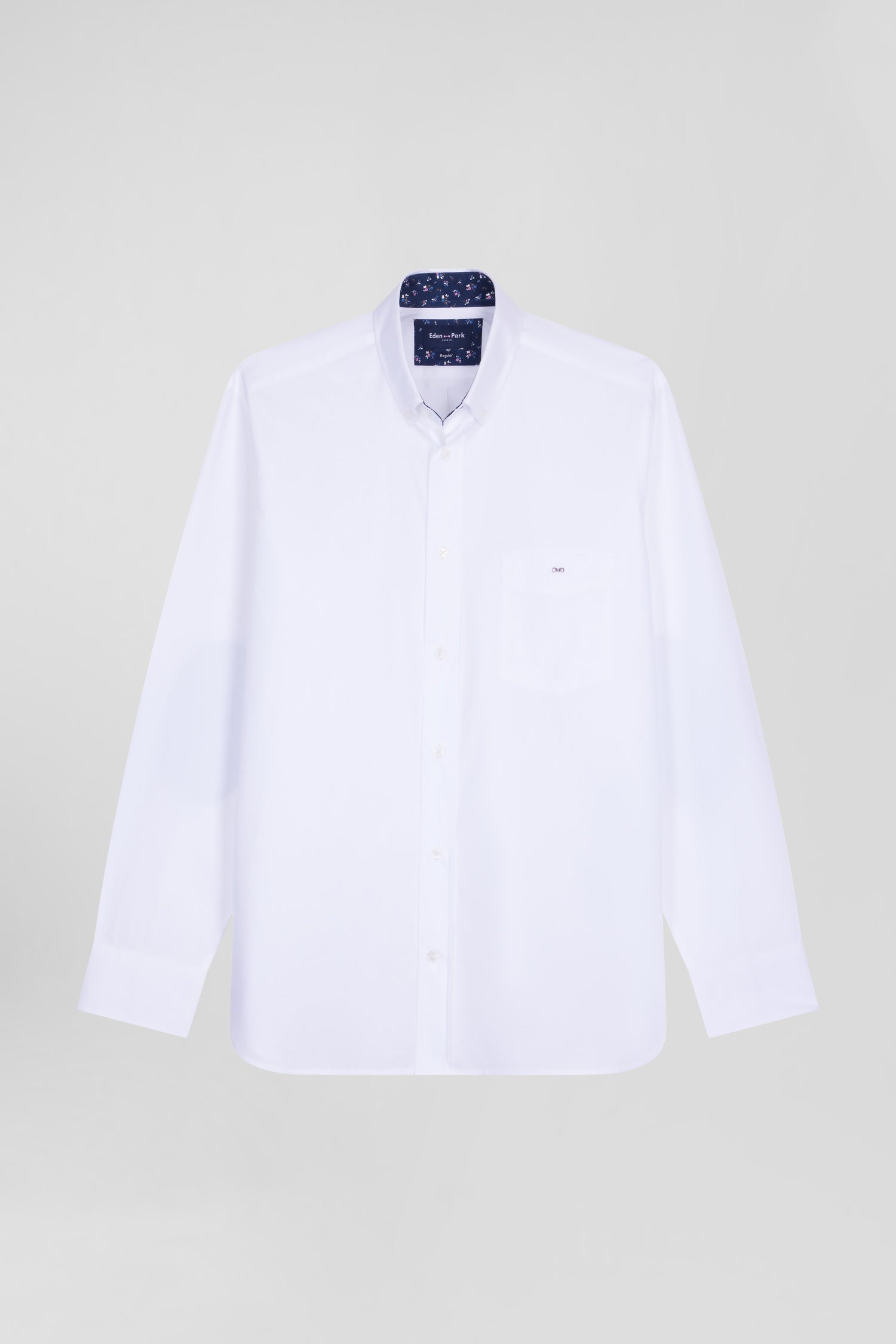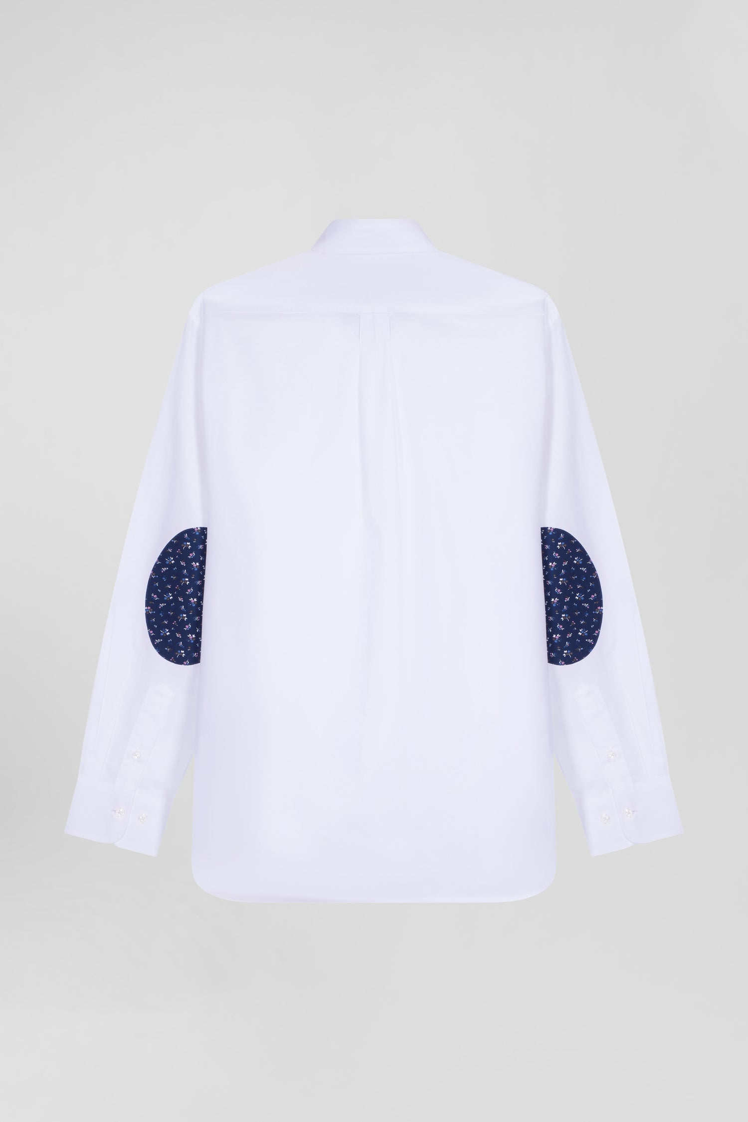 Regular white cotton poplin shirt with button-down collar and printed elbow patches