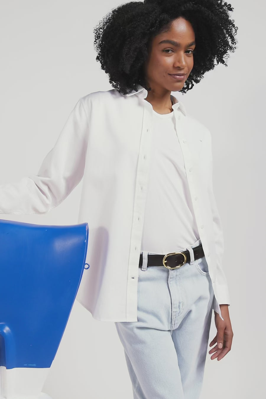 Relaxed white cotton poplin shirt
