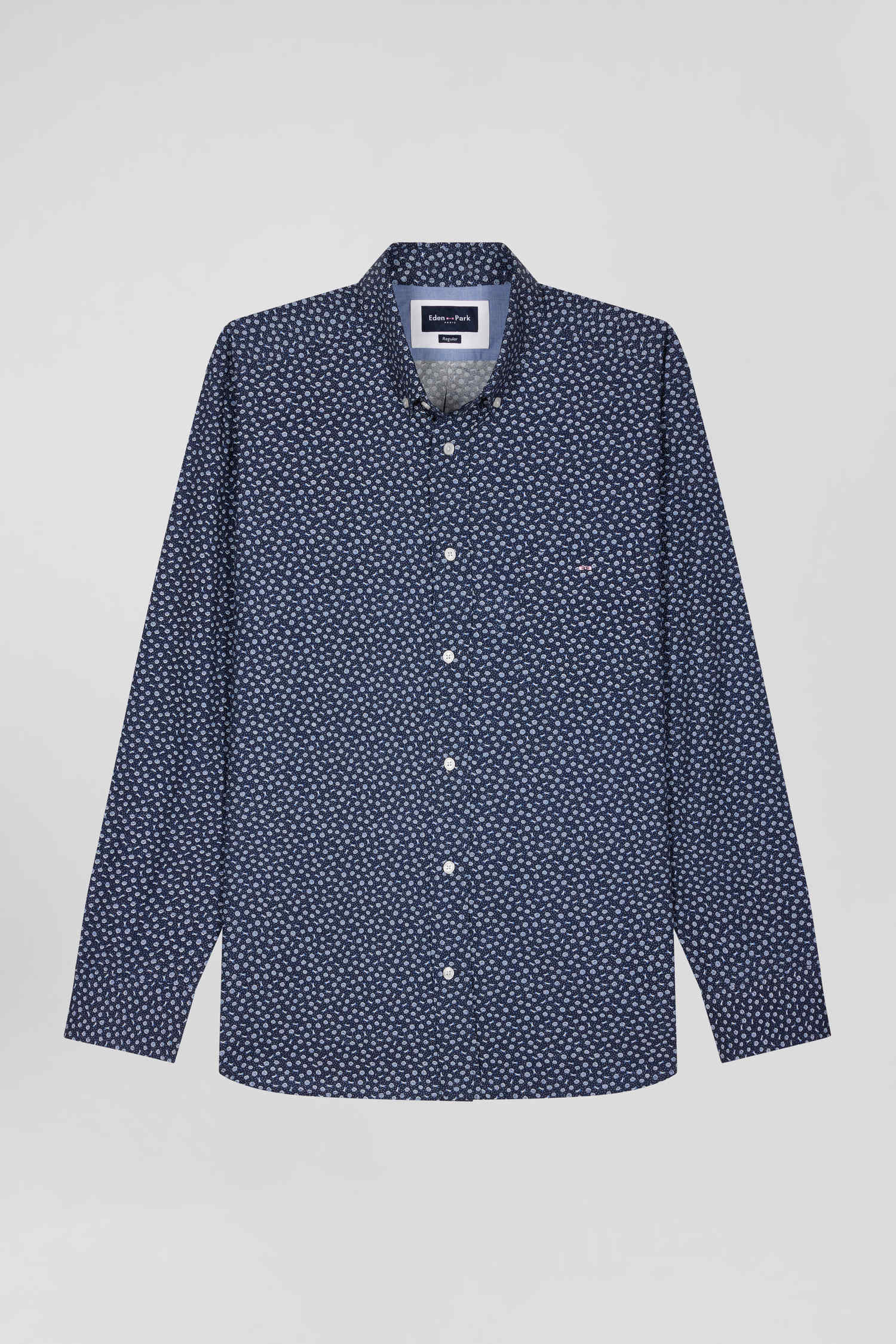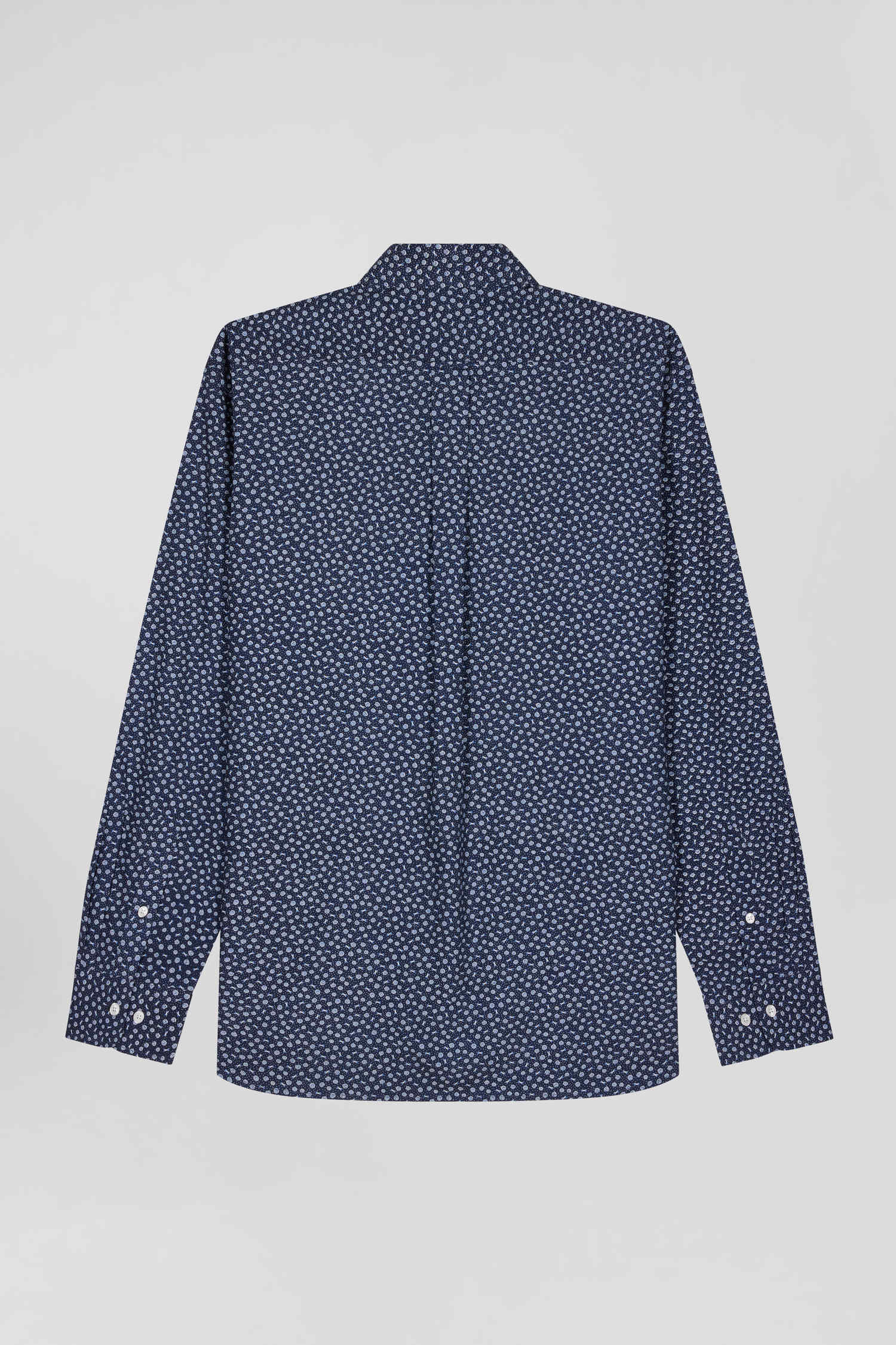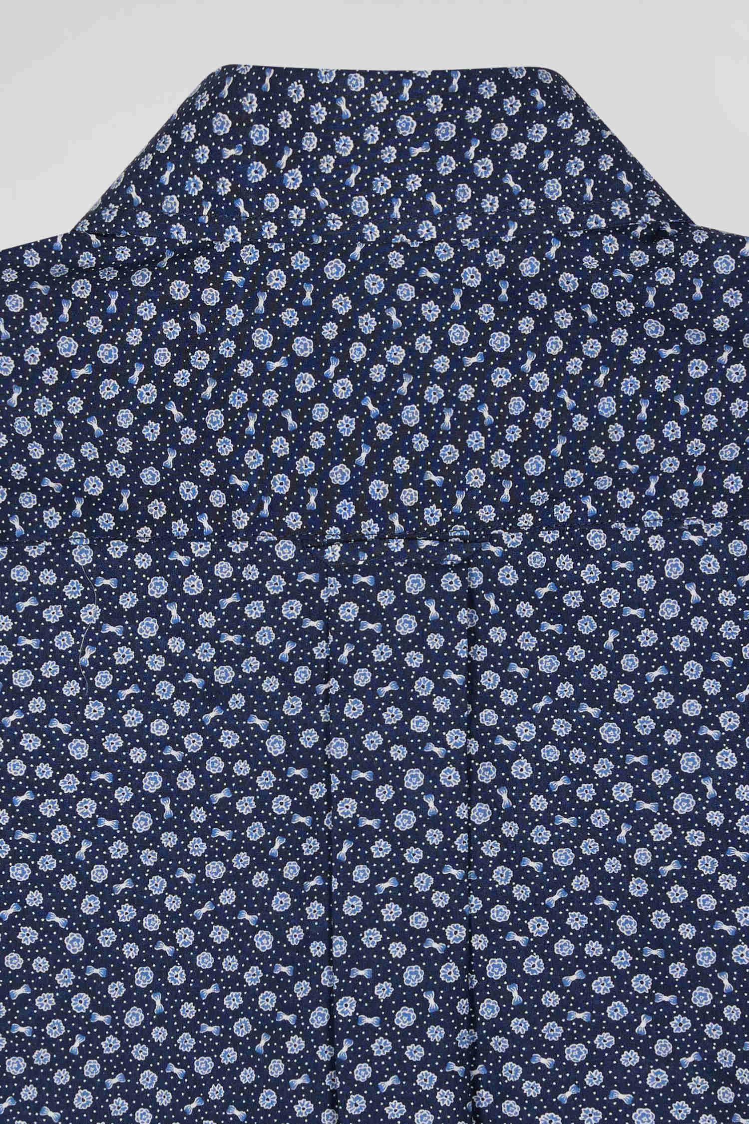 Regular navy cotton poplin shirt with micro floral print