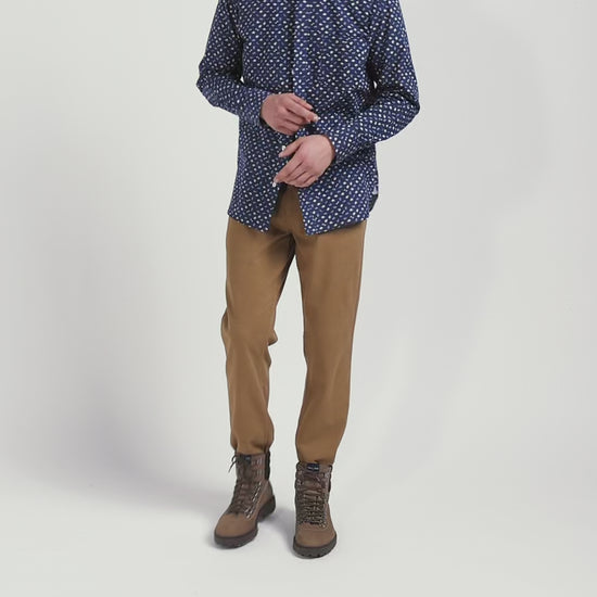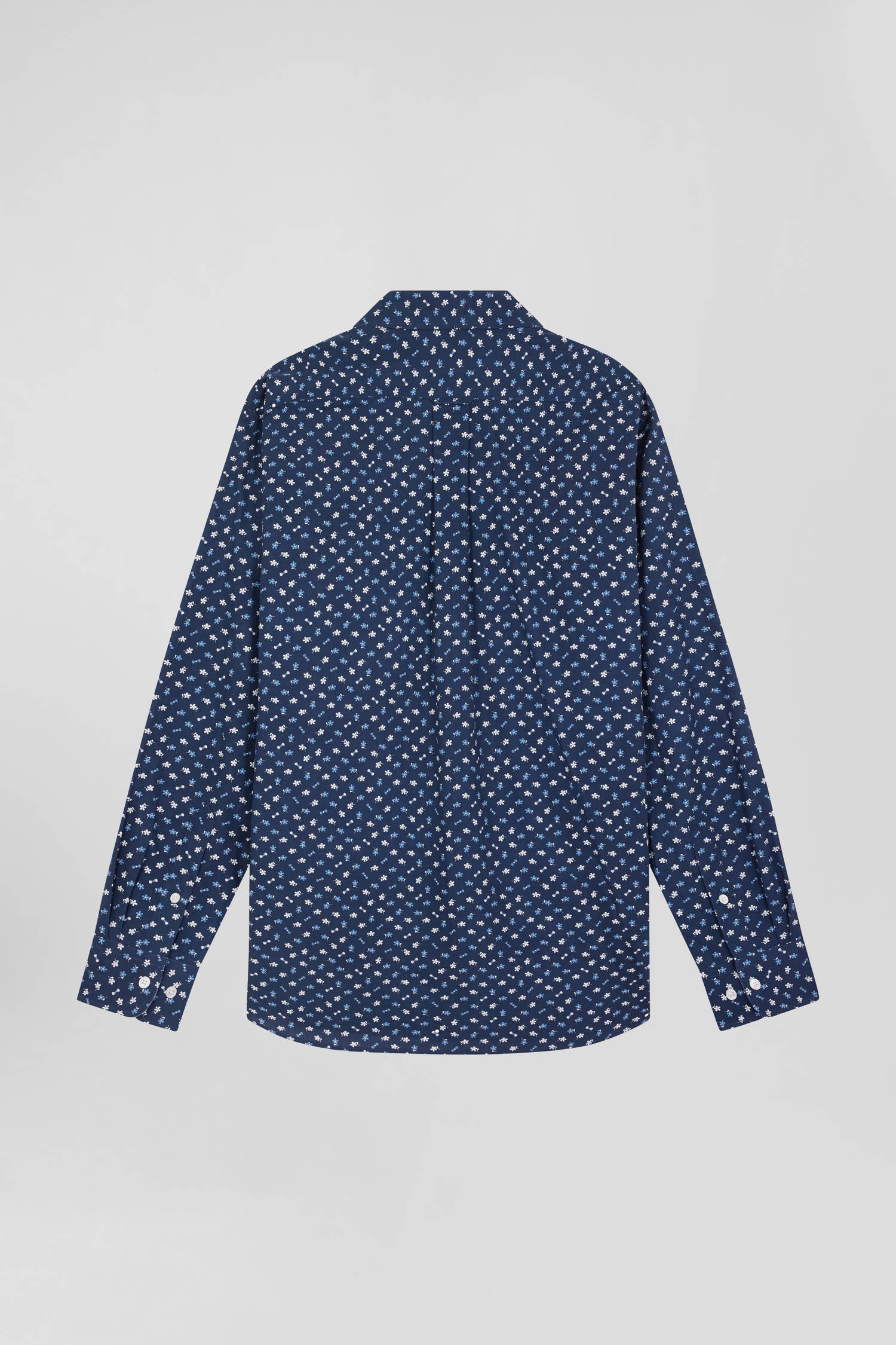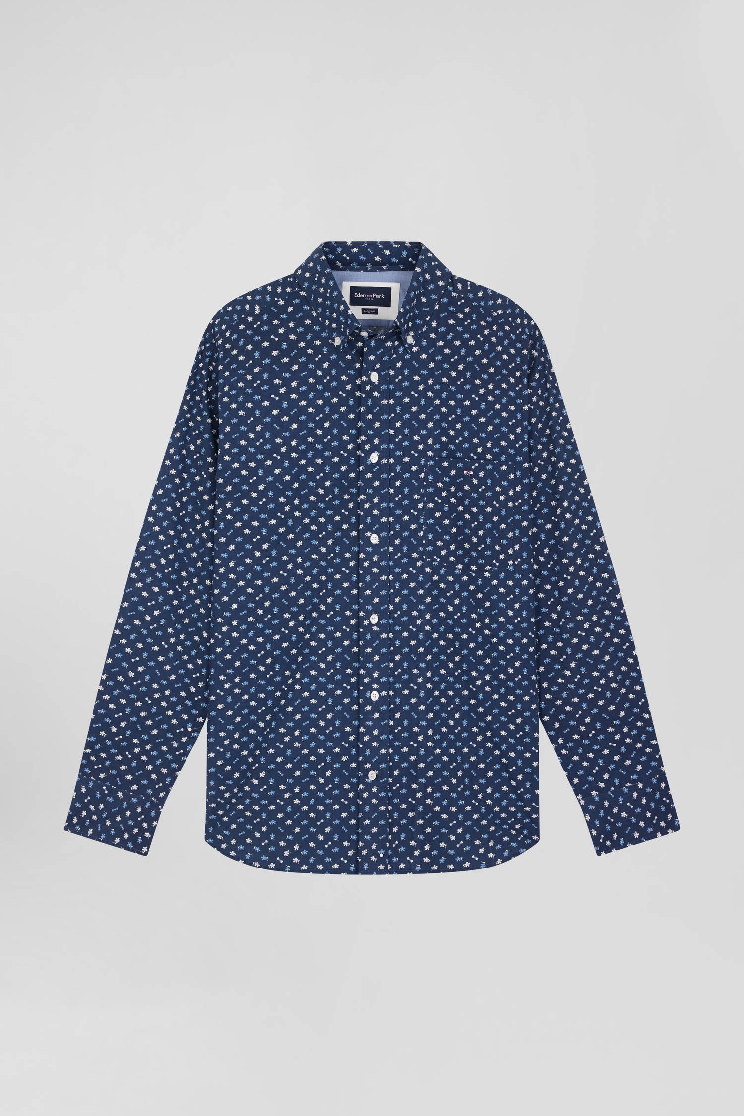 Opt for elegant masculine style with our navy shirt, enlivened by a floral microprint. Perfect for a casual yet polished look, this men's shirt combines relaxation and refinement with ease. This printed shirt is ideal for those looking to combine comfort and style, reflecting the spirit of our brand while adding a subtle touch of originality to your everyday outfit.