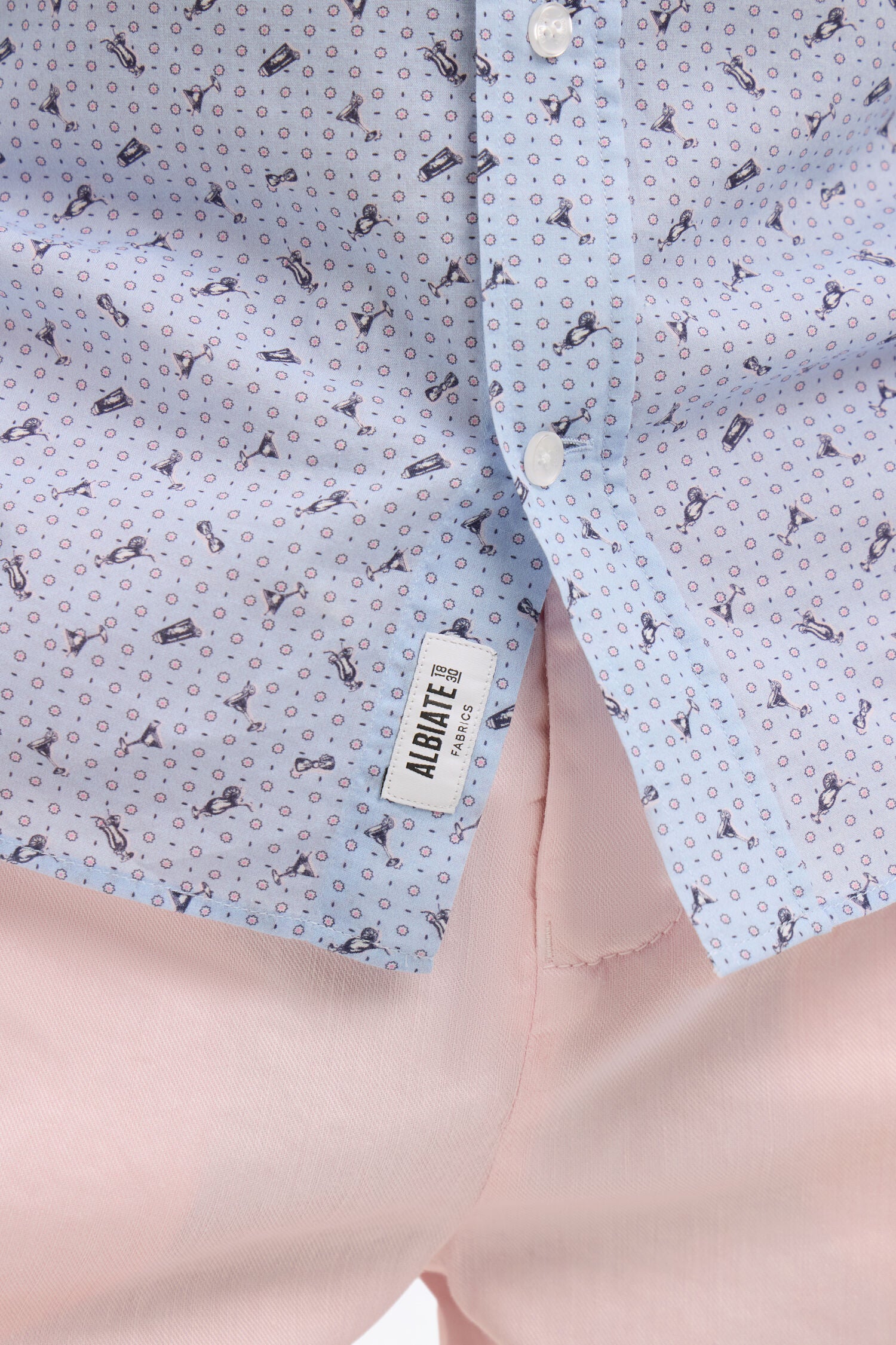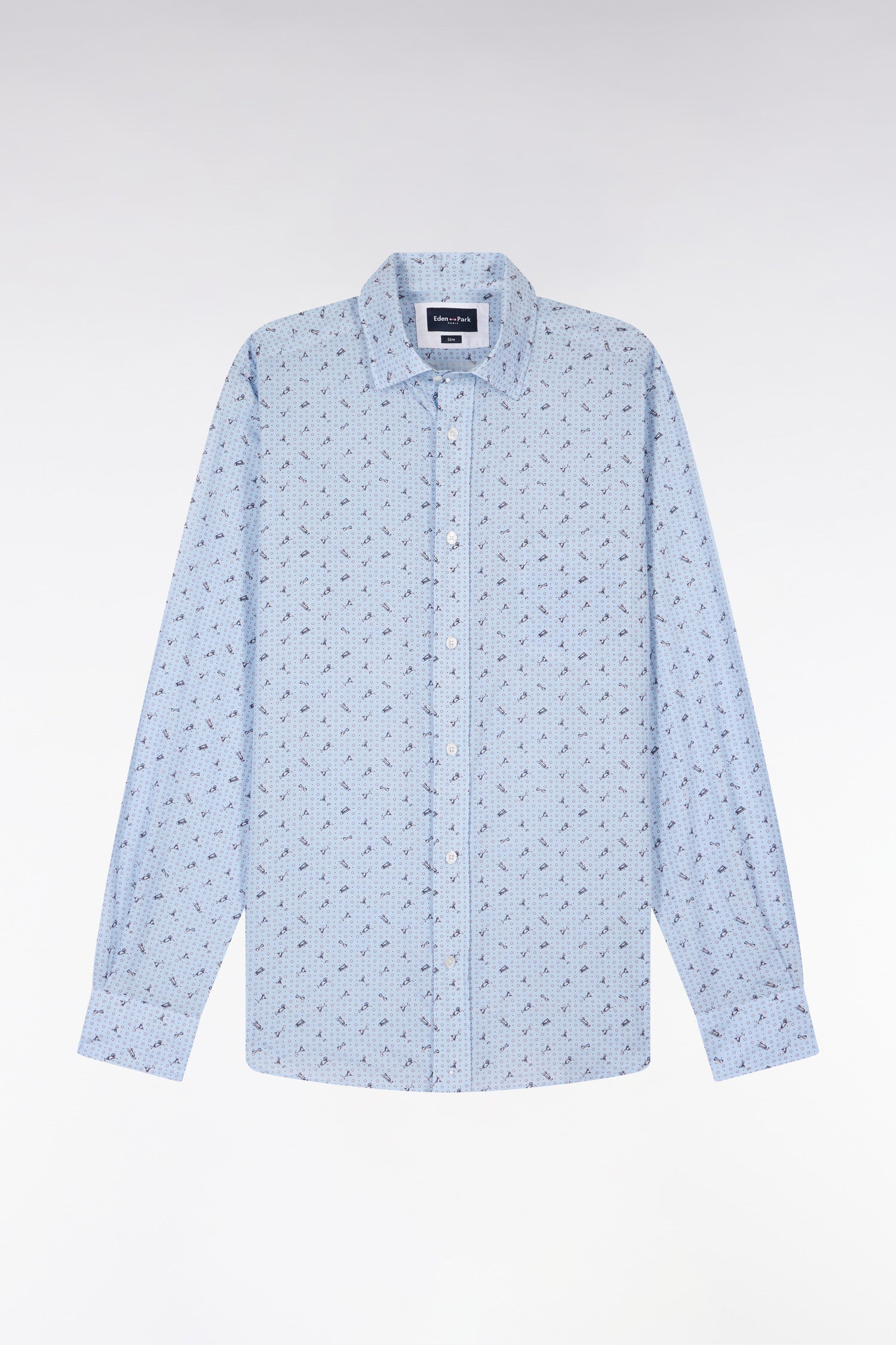 Chemise en popeline de coton bleu ciel à micromotifs coupe slim