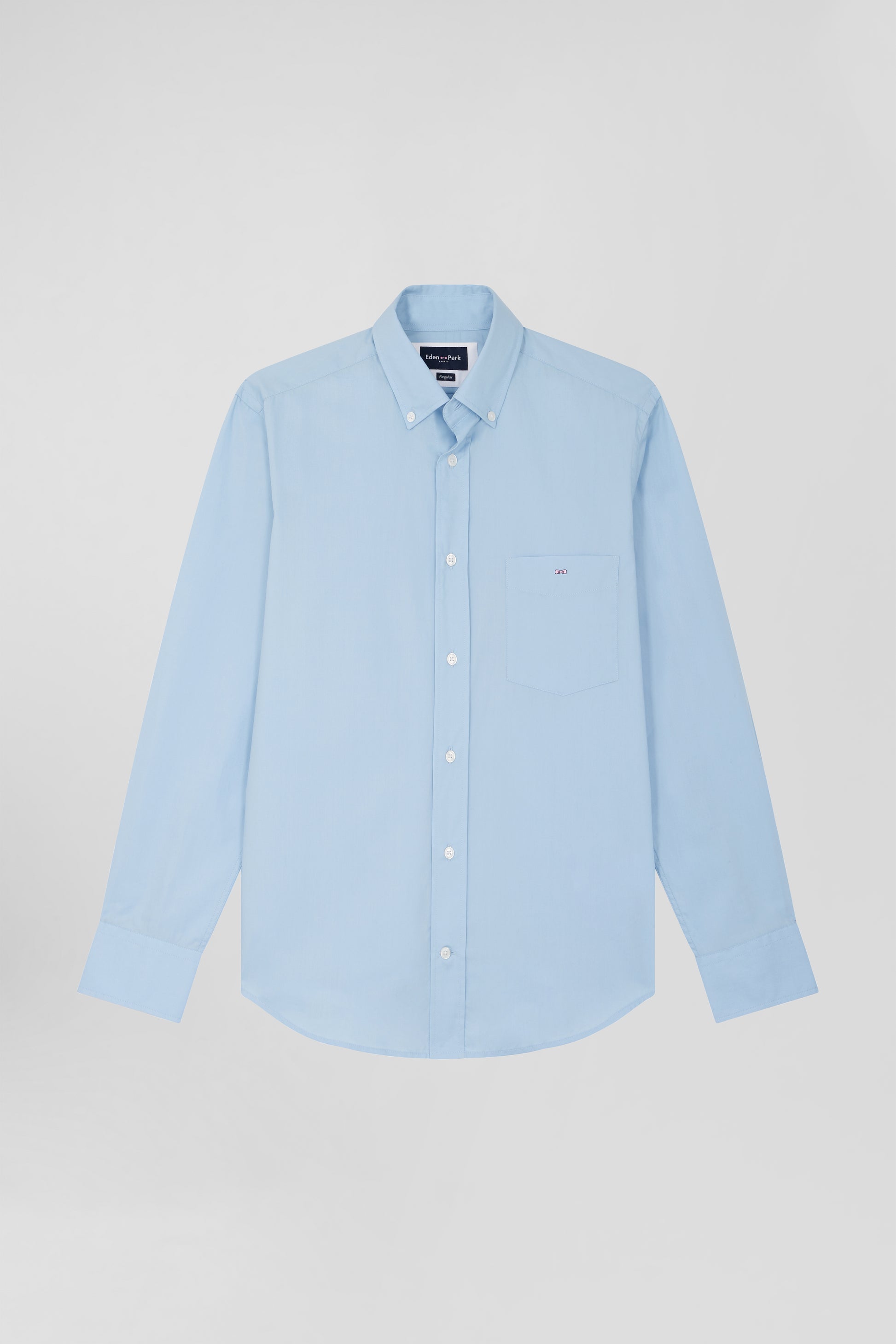Regular plain sky blue cotton poplin shirt