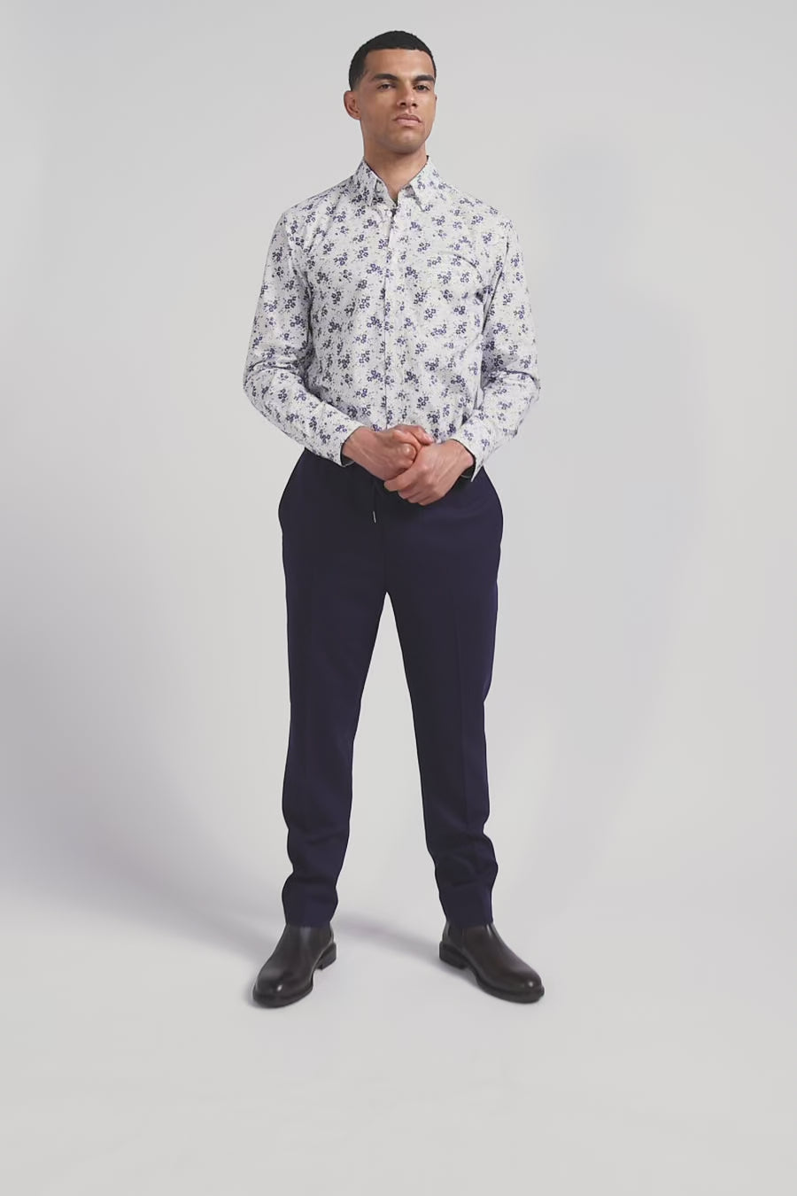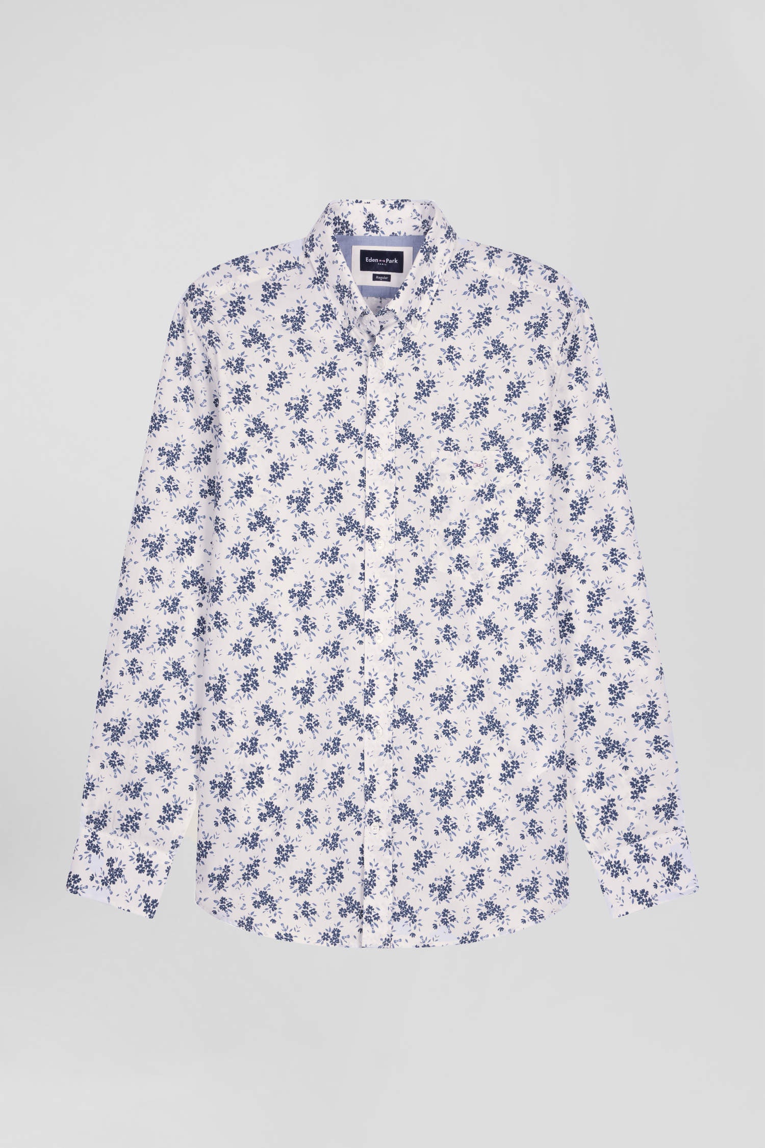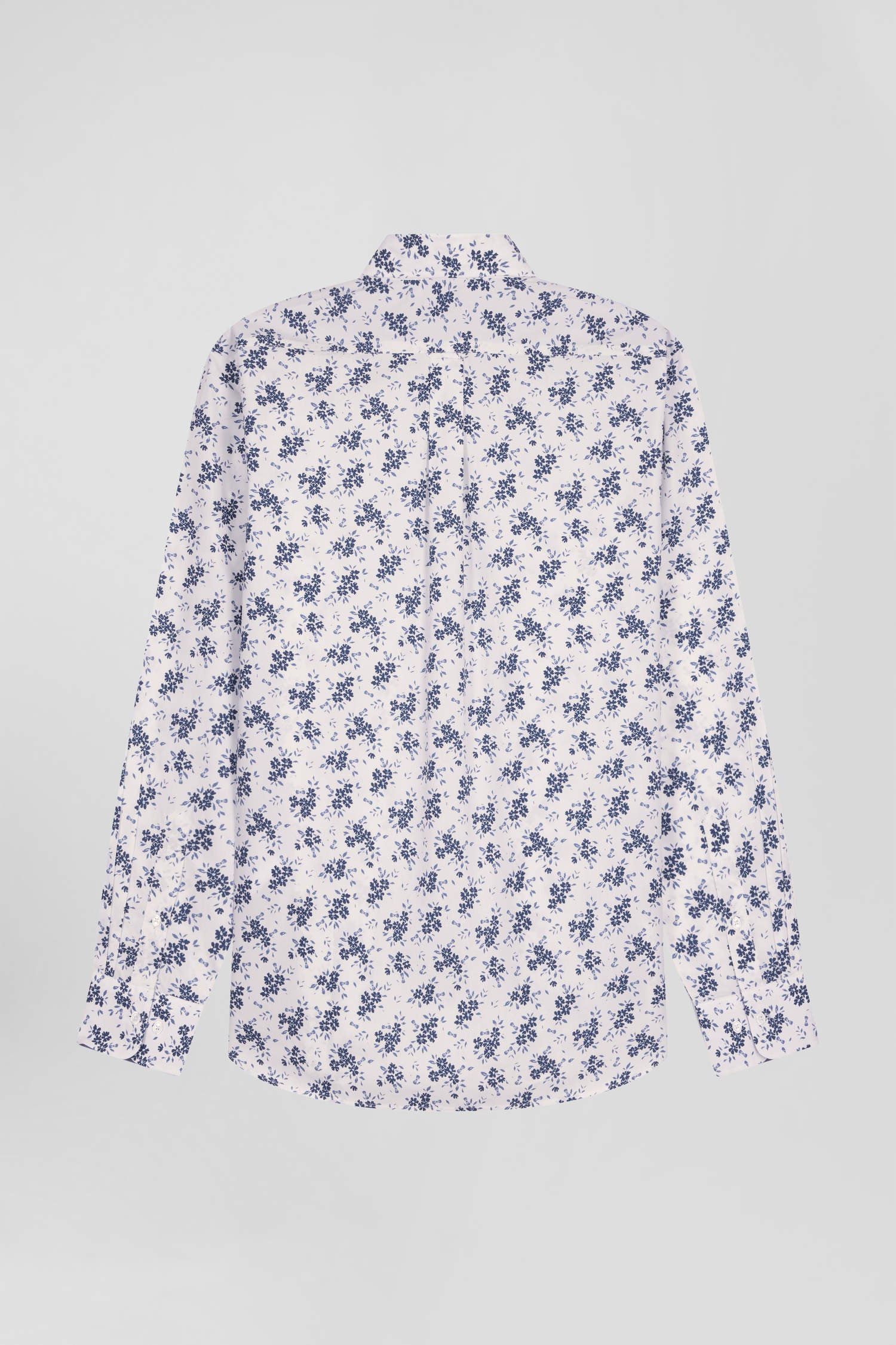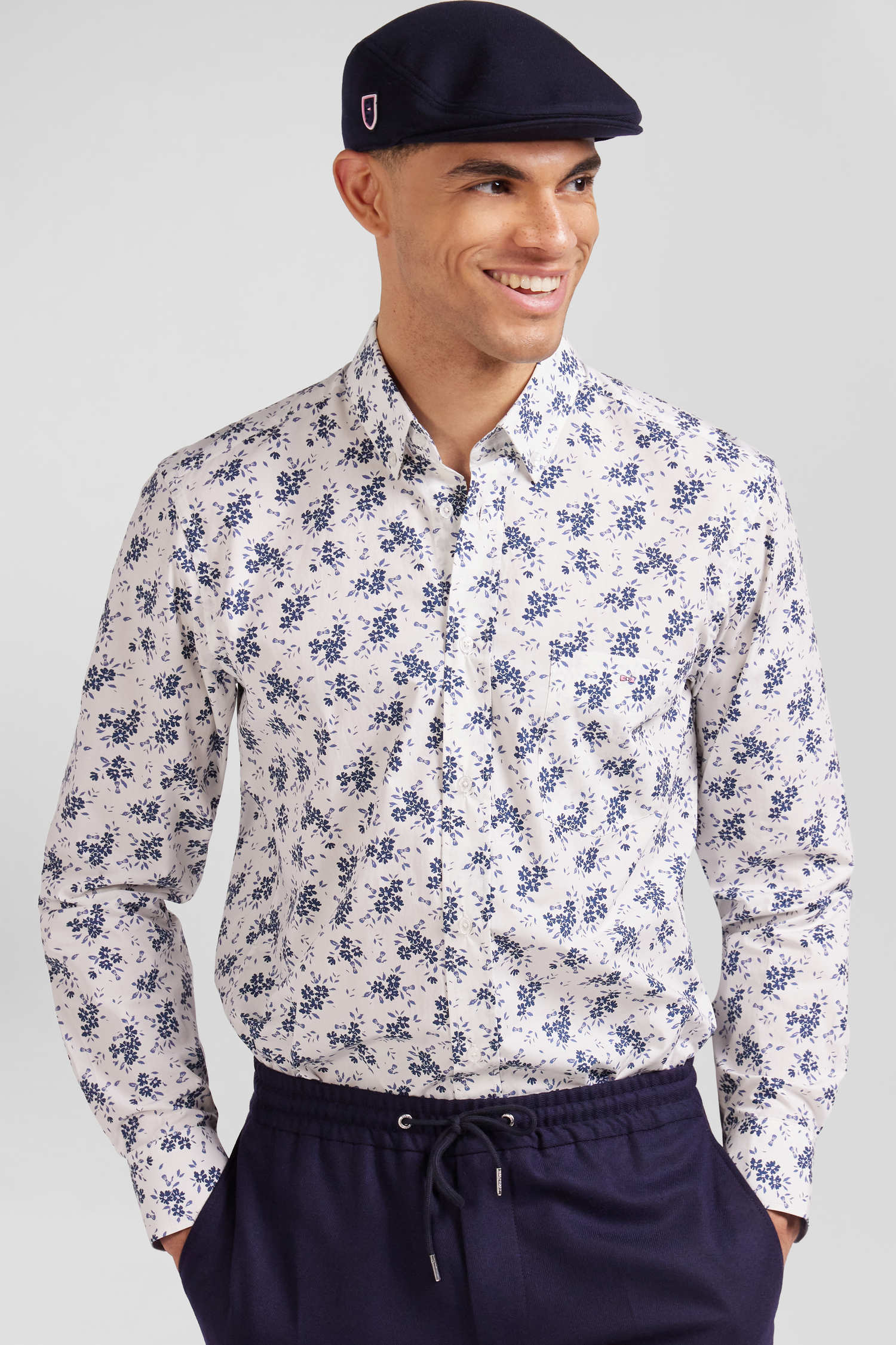 Modernity and sophistication come together in this ecru shirt, to which a subtle navy micro-patterned floral print adds a touch of distinction. Its straight Regular cut offers a perfect fit, ideal for casual elegance. A bold choice for those seeking a unique and sophisticated style.