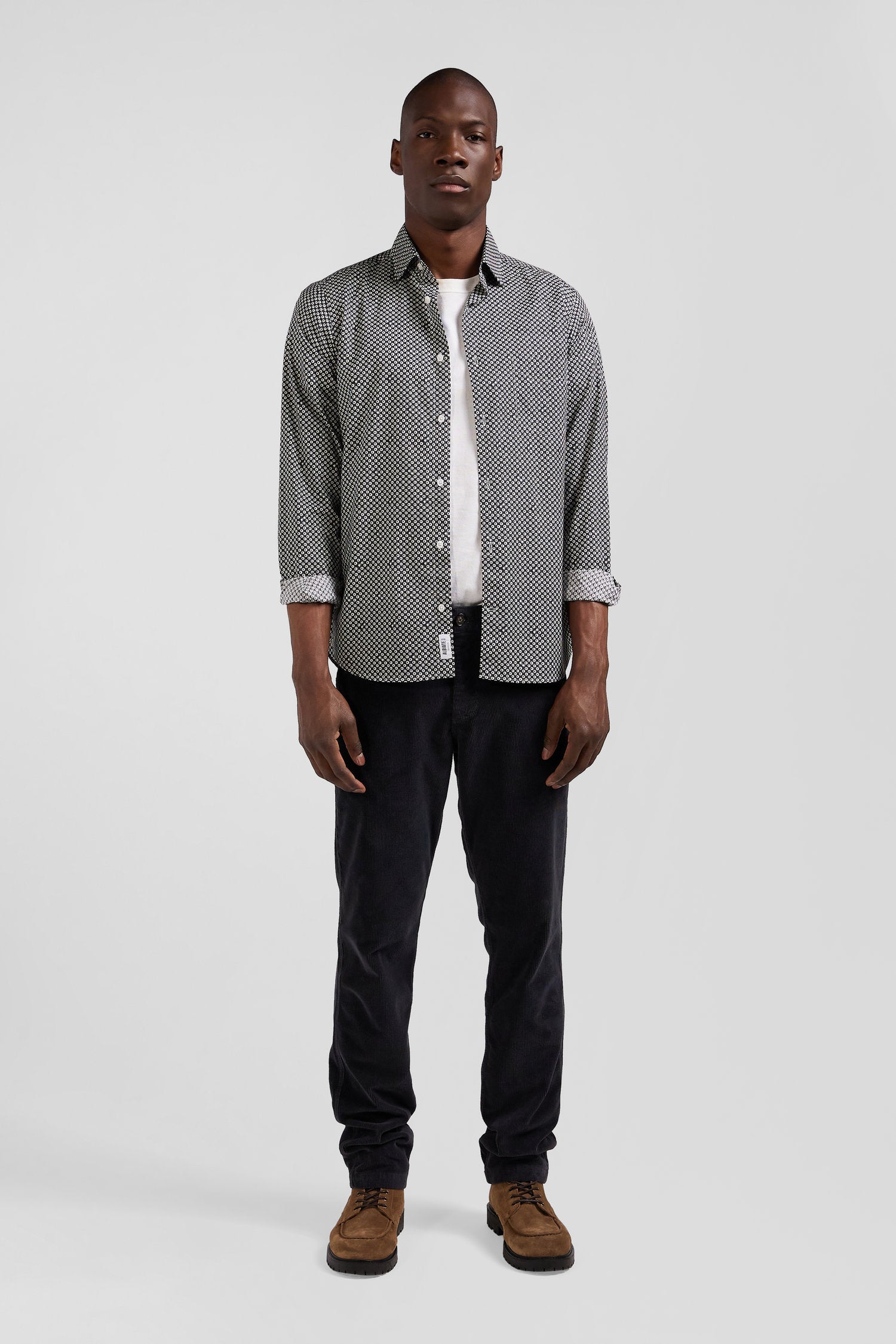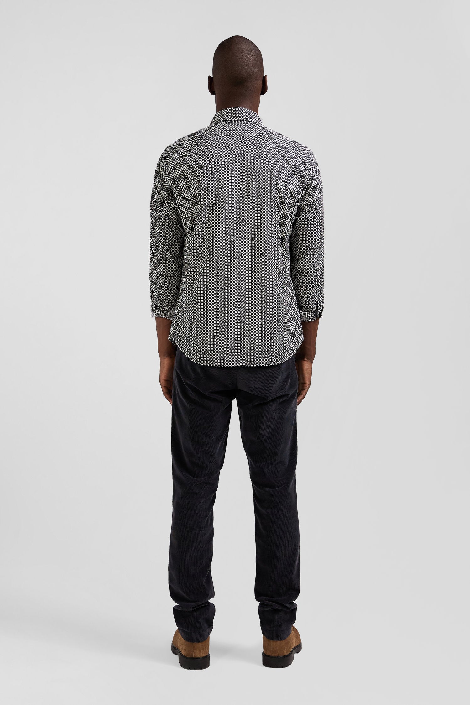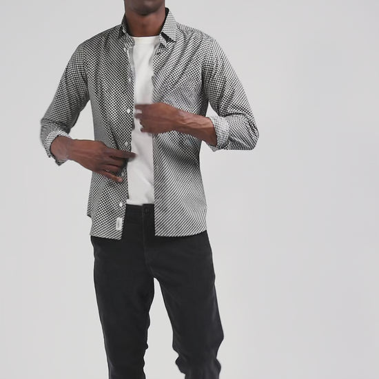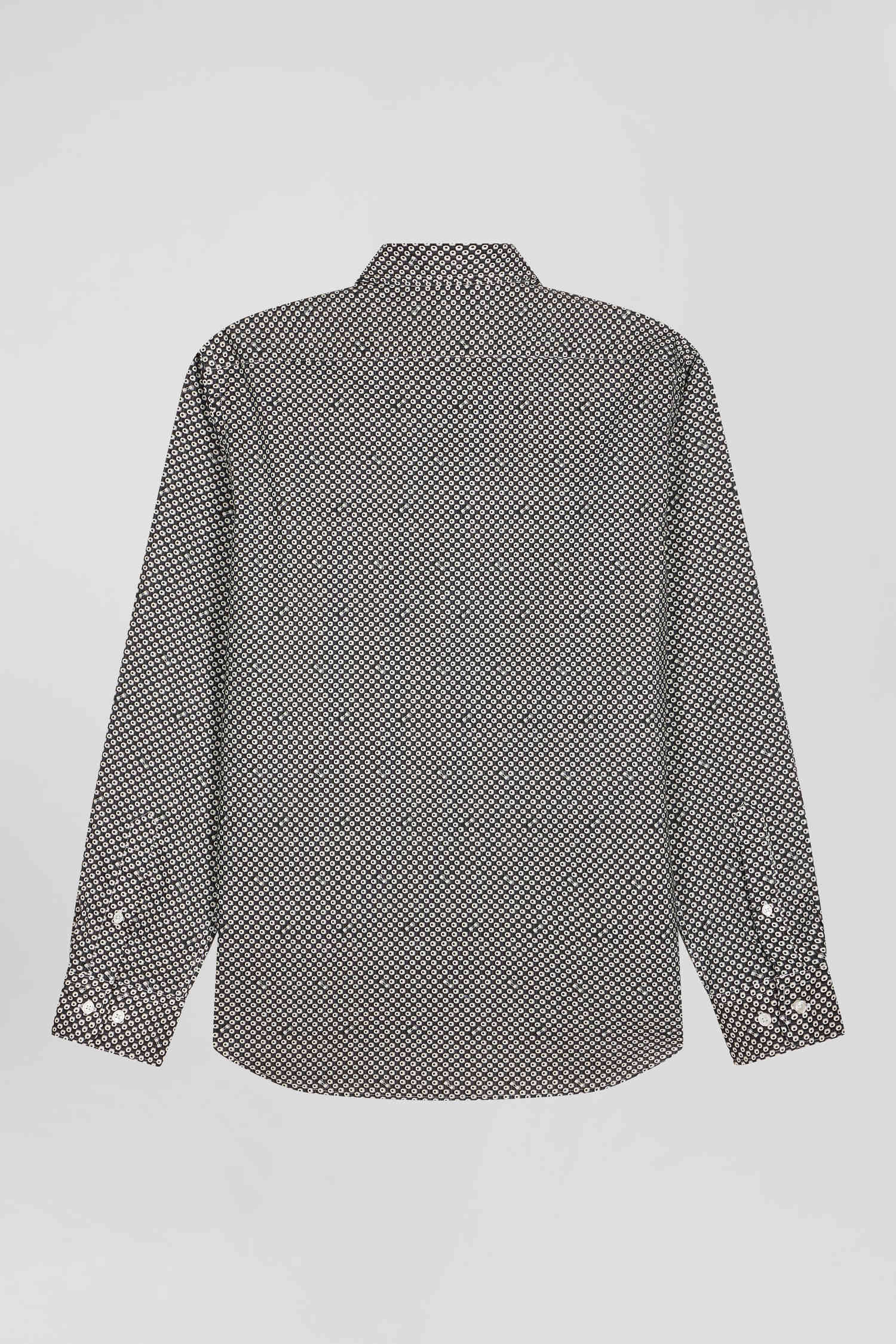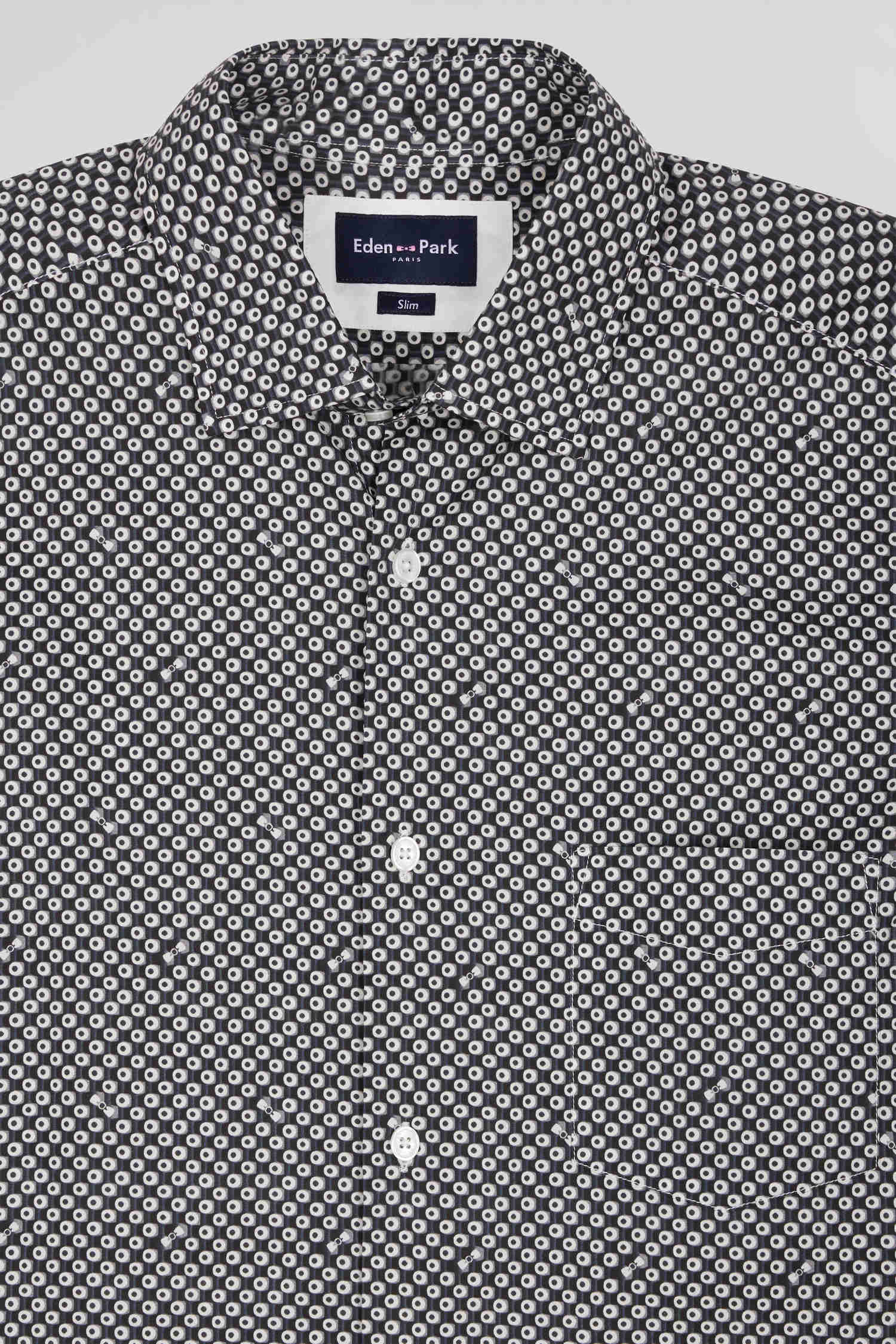 Refresh your dressy wardrobe with our gray cotton poplin shirt, perfect for any occasion. The soft fabric ensures maximum comfort, while the modern graphic print, combined with a button-down collar and precise slim fit, offers a sophisticated yet contemporary look. This men's shirt is an ideal, on-trend choice for those seeking style and functionality.