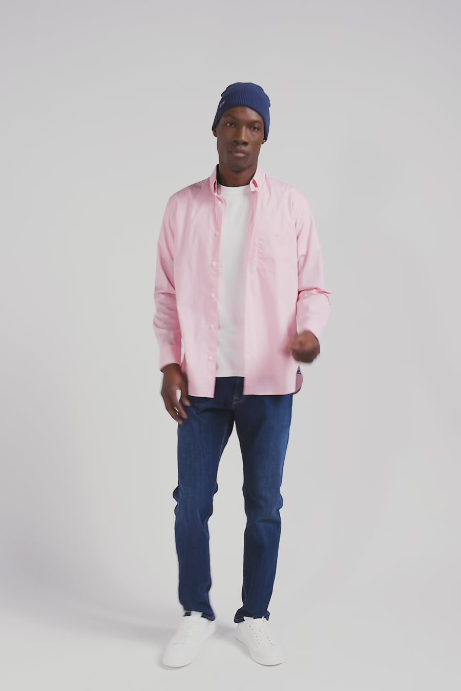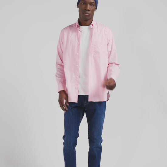 Regular pink cotton poplin shirt with button-down collar and printed elbow patches