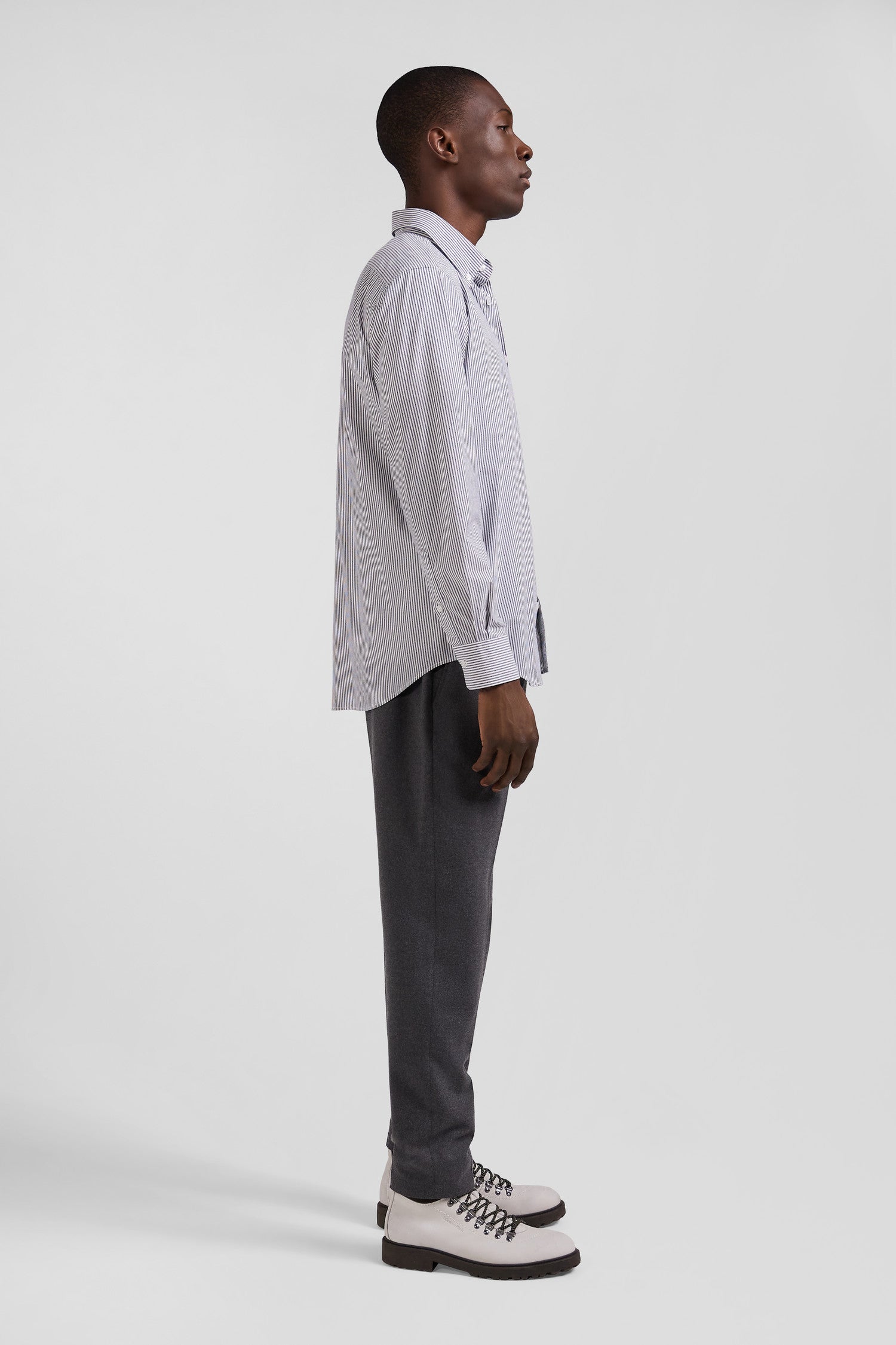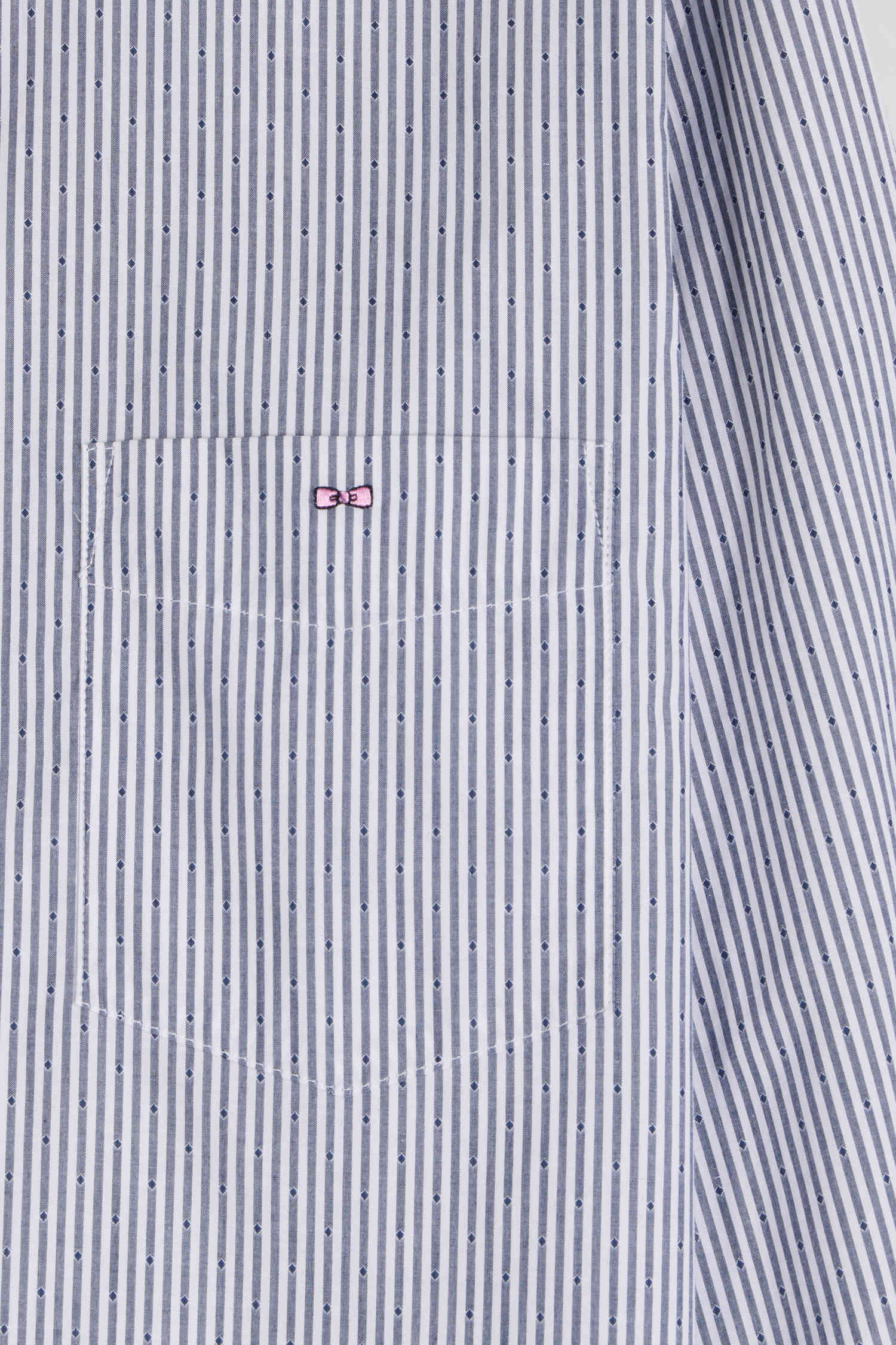 For a sophisticated everyday outfit or a dressy occasion, let yourself be seduced by the refined elegance of our striped shirt in a jacquard pattern of micro diamonds. This piece subtly combines texture and pattern to create a unique visual effect. Perfect for adding a sophisticated dimension to your outfit, this men's shirt with its Italian weave combines the timeless charm of stripes with an original, graphic touch.