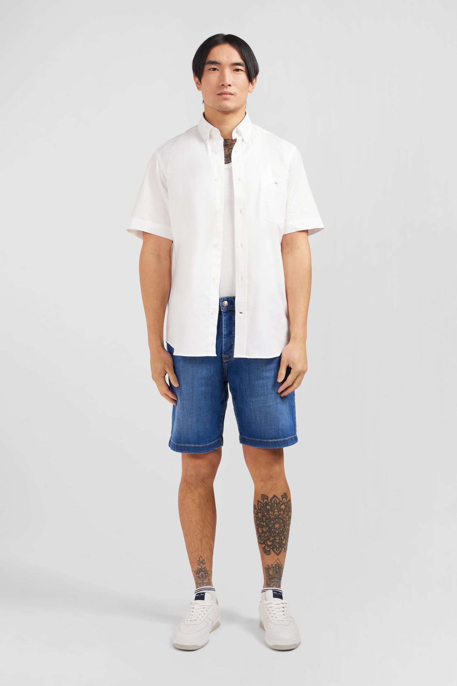 Short sleeved white cotton shirt