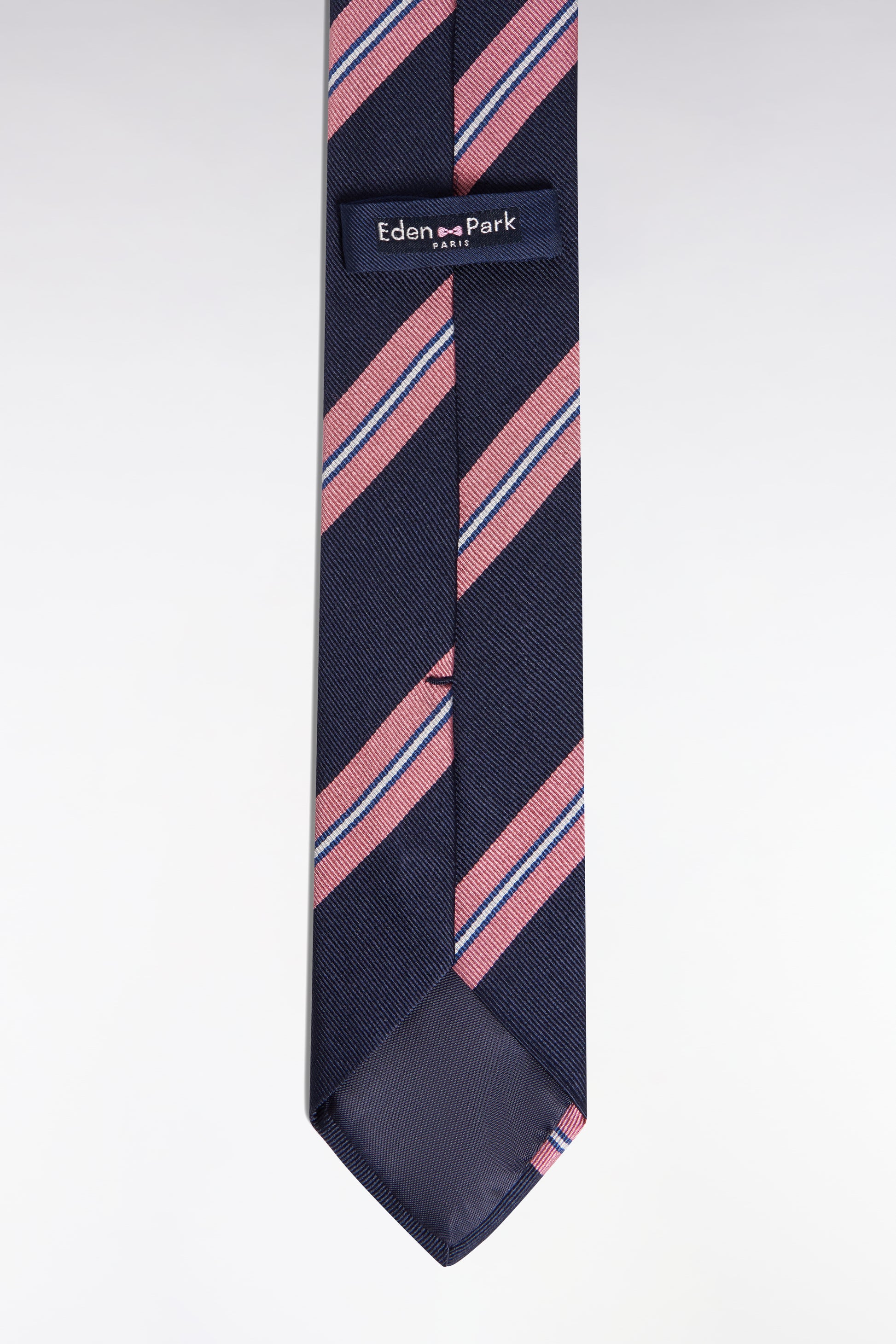 Navy and pink striped silk tie