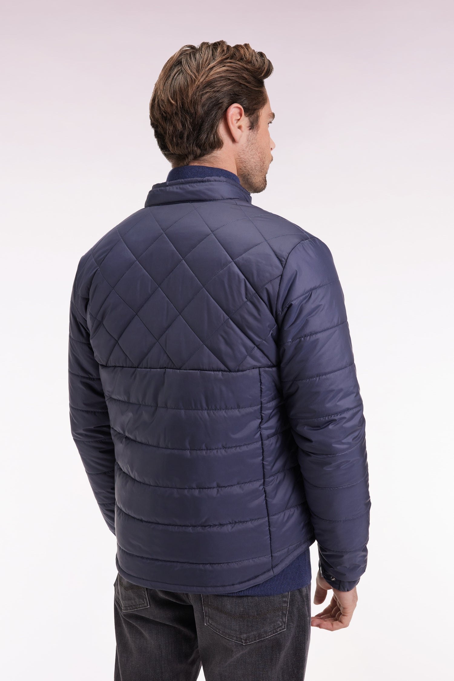 This beige down jacket combines urban protection with contemporary elegance. Its double quilting, featuring rhombuses on the top and horizontal quilting on the bottom, structures the silhouette with character. Water-repellent, with a press-stud biker collar, it features signature finishes: Aquaguard double-slider zipper, personalized press-studs, tricolor ribbon under the neckline and gum logo. A sporty-chic piece designed to face the cold with style, in town or out. With this down jacket, our company affirms its DNA: a taste for fine materials, precision finishing and the right look for every occasion.