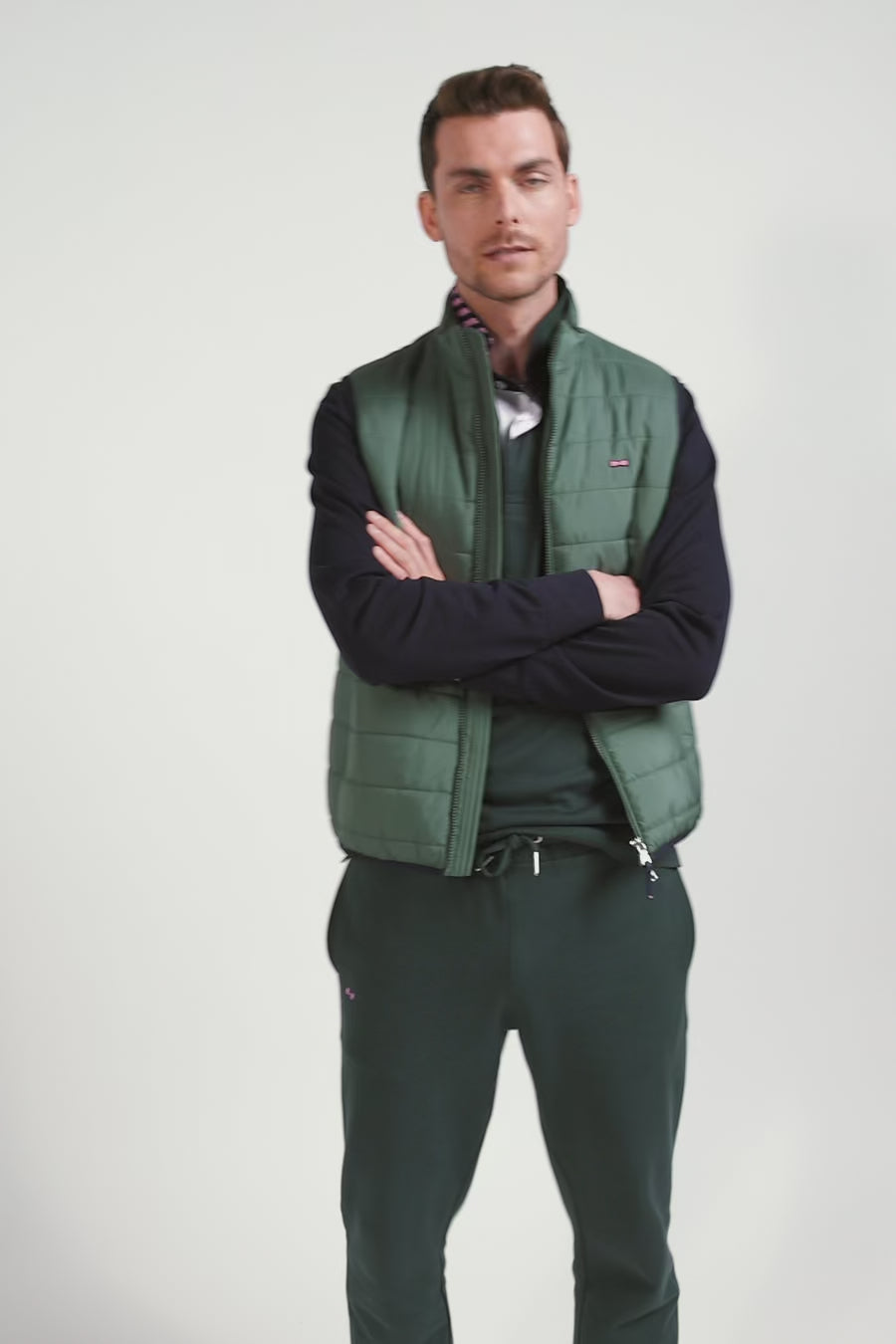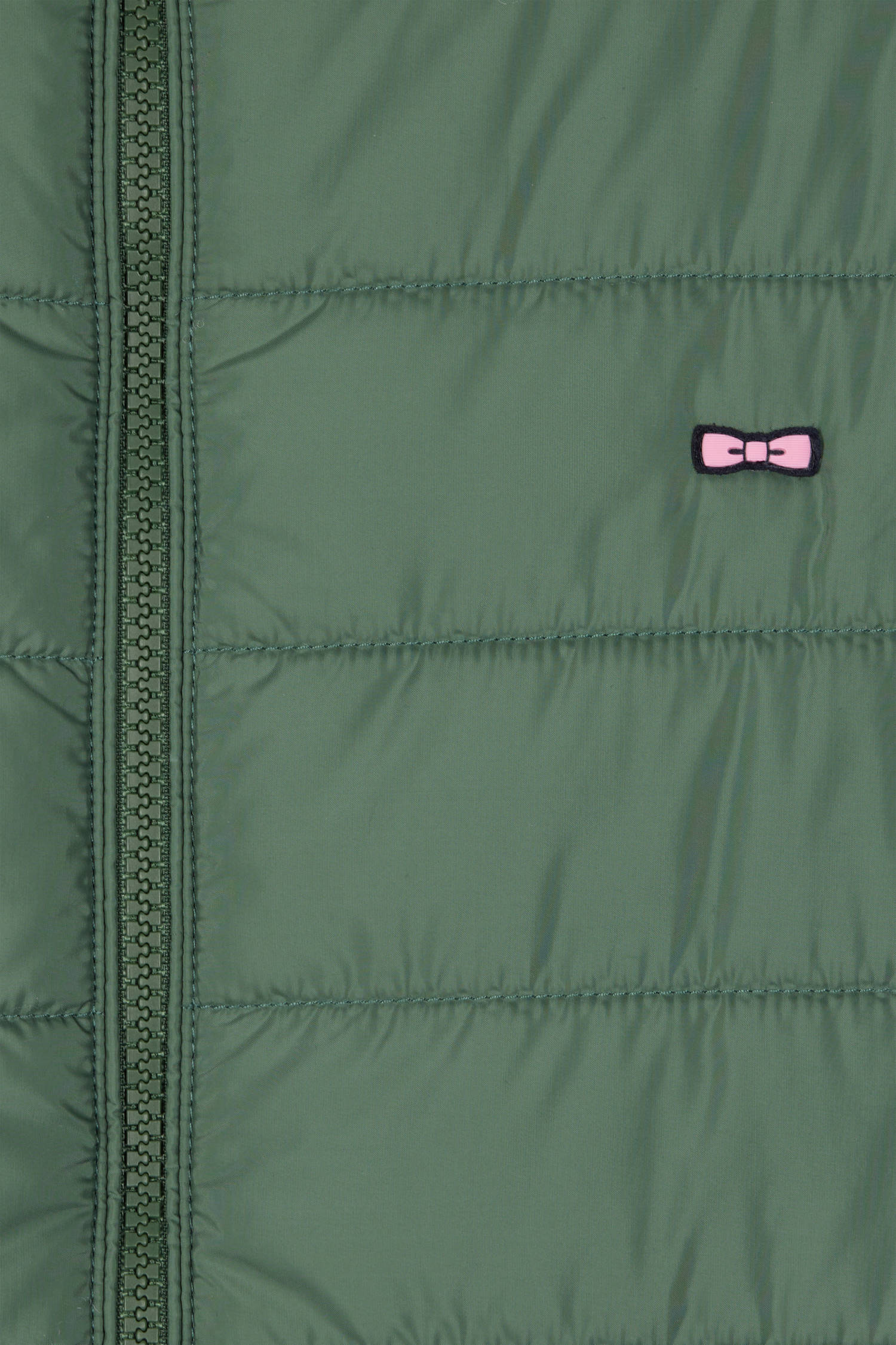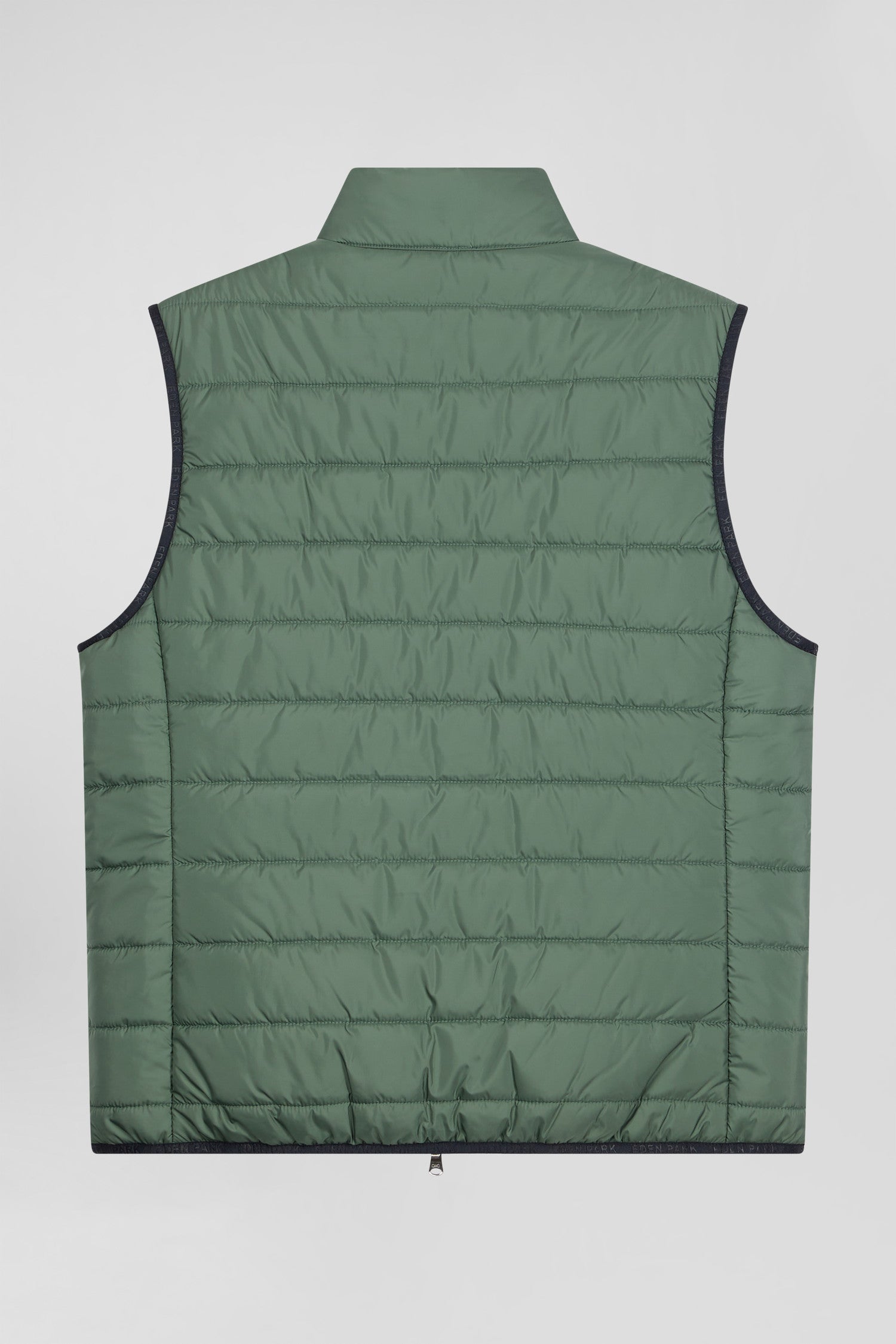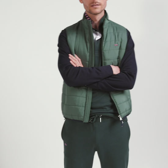 Green quilted sleeveless high collar down vest