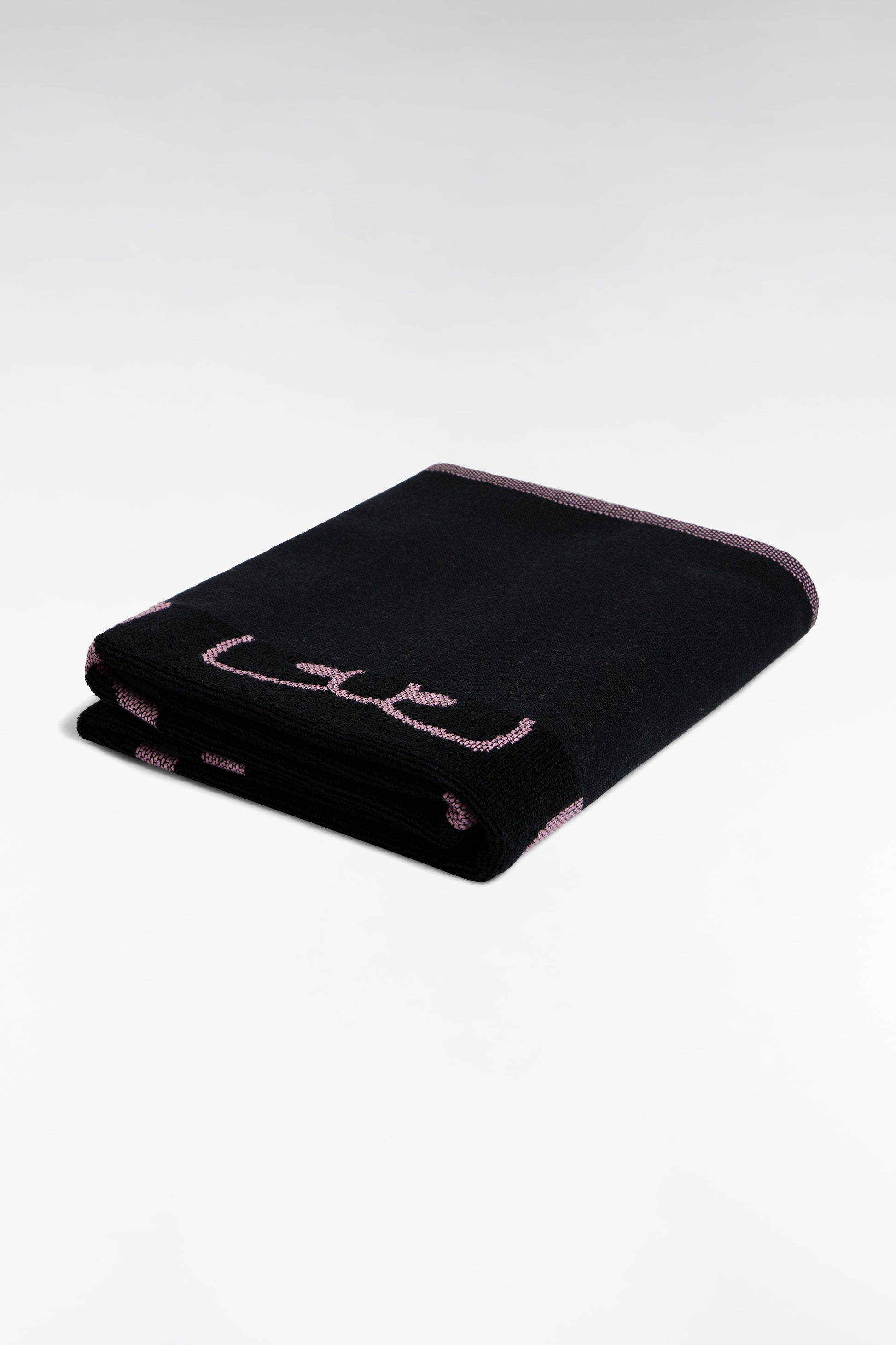 Navy cotton terry beach towel with pink Eden Park jacquard