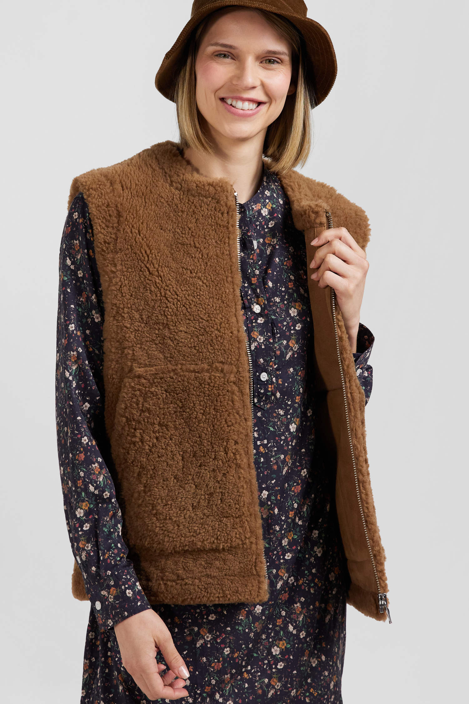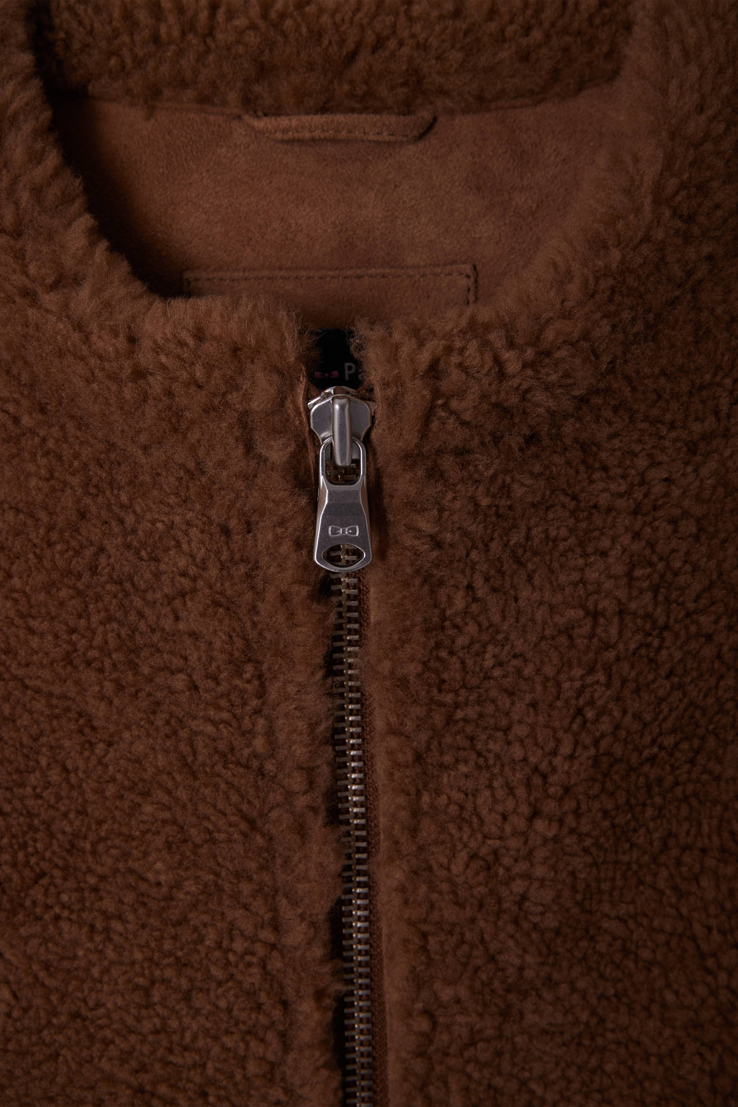 Sleeveless zip-up vest in hazelnut sheepskin Relaxed fit