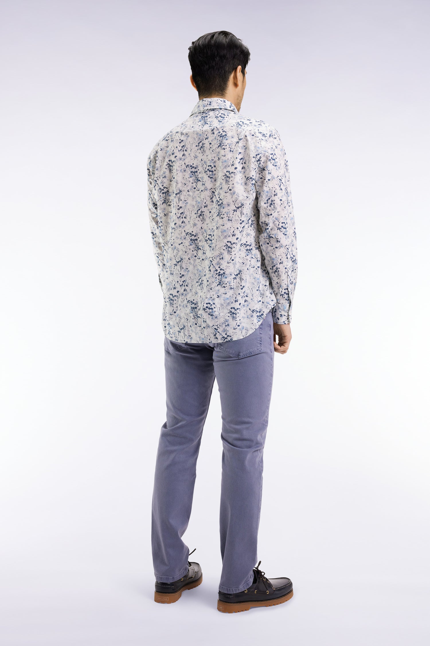 These 5-pocket jeans in dyed cotton canvas are available in grey, grey-blue or beige for a stylish variation. The straight Regular cut ensures comfort and balance, while the signature finishings add an original French Flair touch that's very much part of the Eden Park wardrobe.