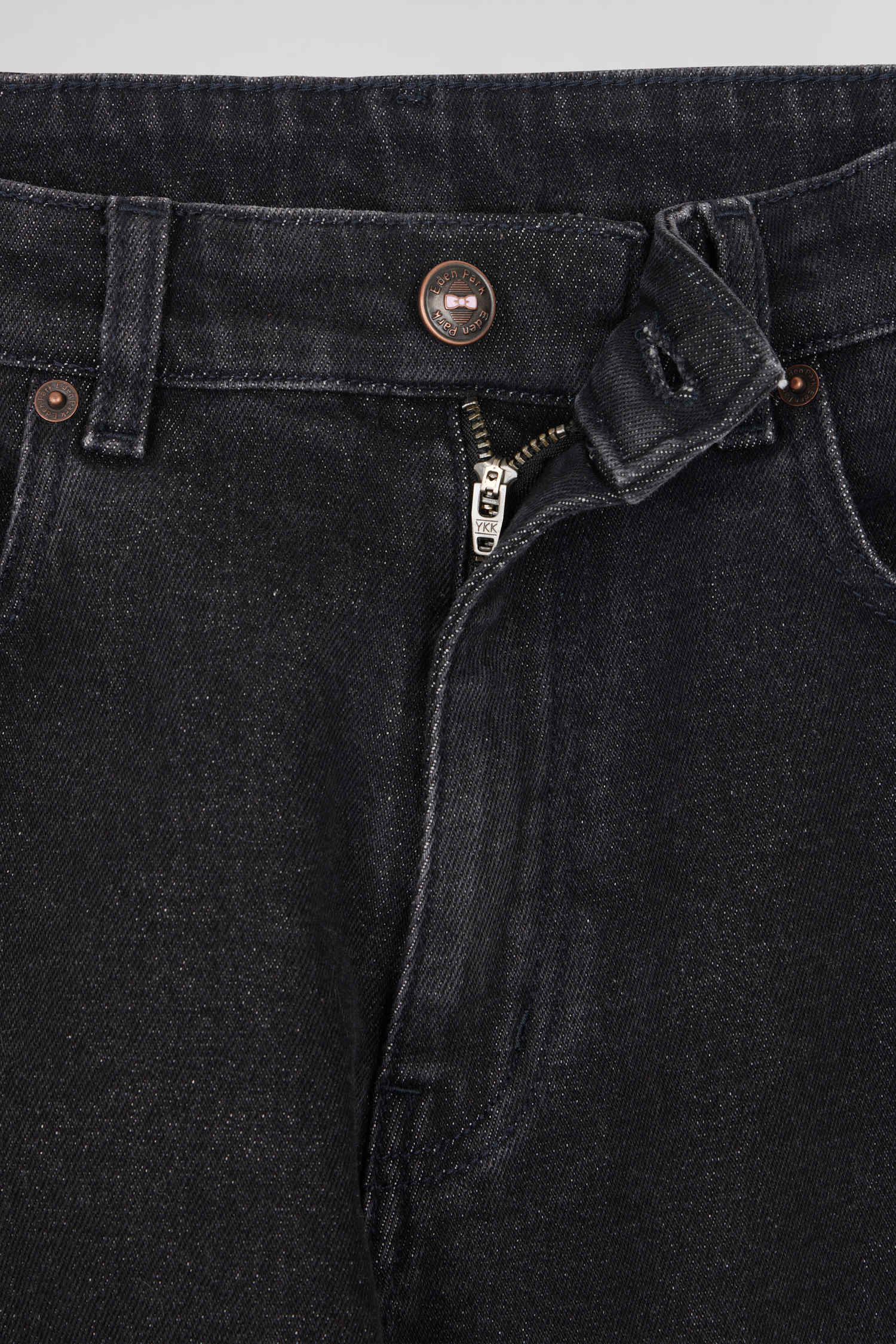 Our women's black jeans are crafted in a straight Regular fit that hugs the figure perfectly while remaining flattering. This versatile and durable model is an essential for any modern wardrobe, offering the perfect base for a variety of outfits, whether you're in the mood for a chic casual ensemble or something more formal. Crafted with the excellence and expertise of our house, these jeans combine style and comfort for everyday wear.