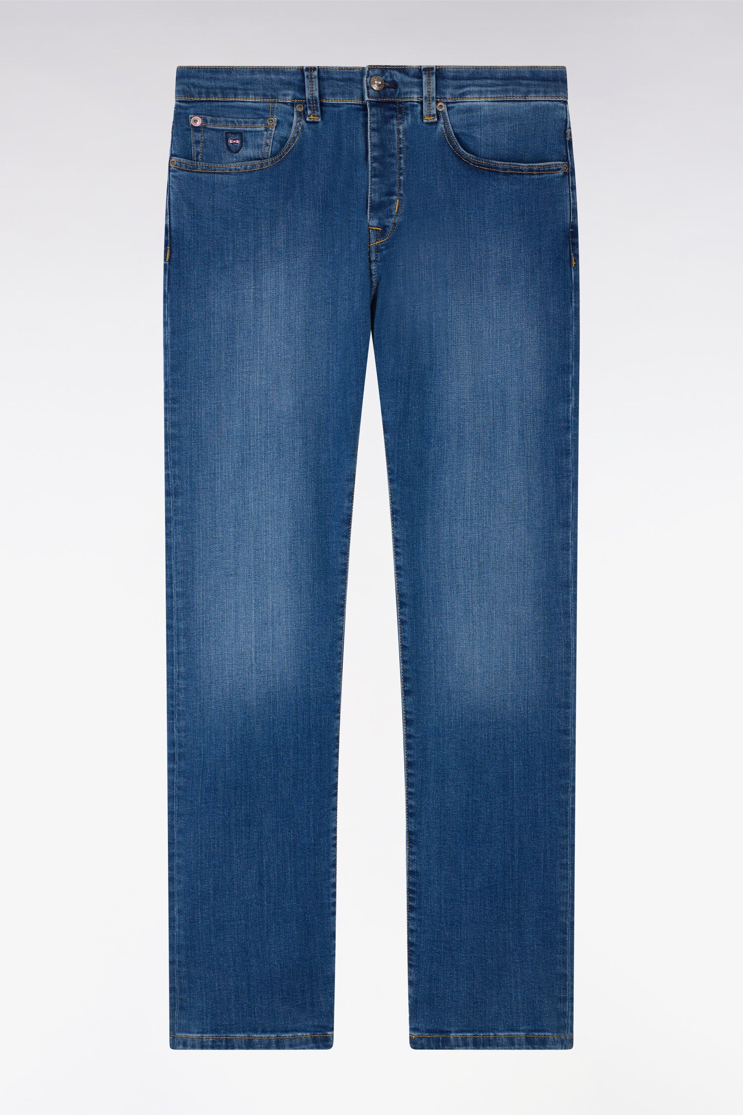 These stretch-cotton jeans have two western front pockets and a front coin pocket, 2 patch back pockets, button fastening and a signature Eden Park leather tag on the back