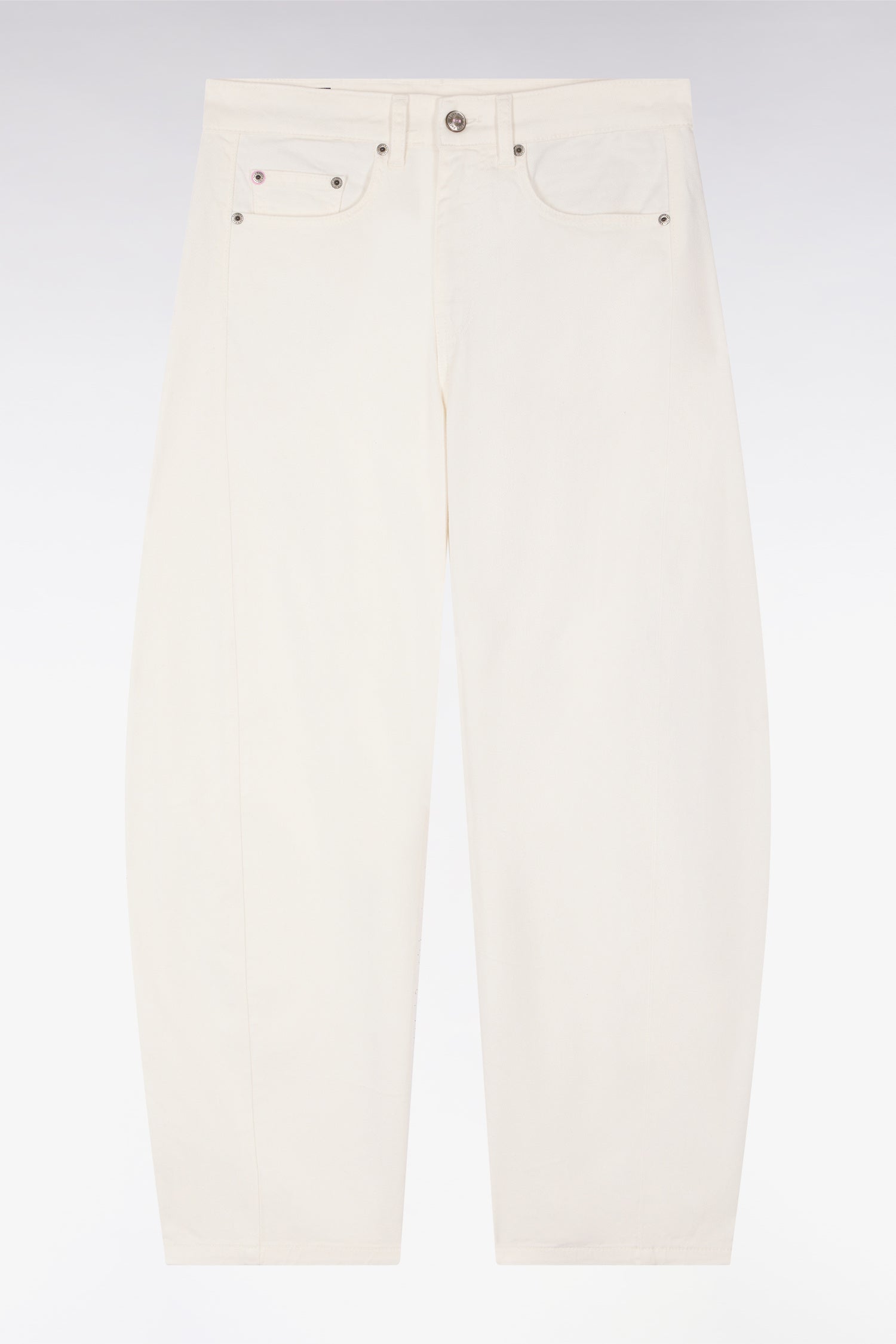 Notre jean femme confectionné en denim stretch blanc met en valeur la silhouette avec une coupe barrel contemporaine, à la fois ample et structurée. Confortable et lumineux, ce jean devient une pièce forte du vestiaire d’été comme de la mi-saison. Ses finitions soignées soulignent la qualité de cet intemporel. Un essentiel mode, facile à associer à la collection comme à vos favoris. Ce jean à l'attitude cool décontractée est incroyablement flatteur.