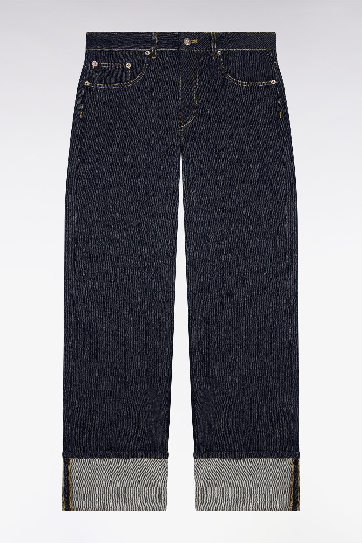 Jean en denim brut coupe droite large à revers cousu