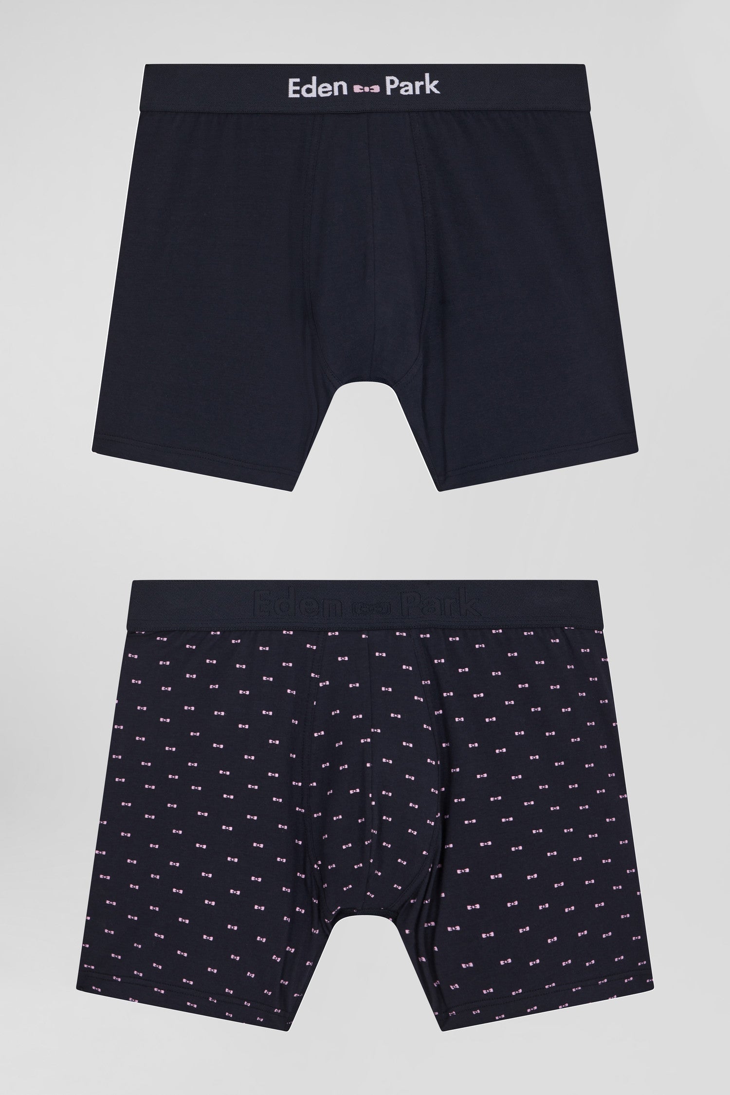 A perfect blend of comfort and style, this set of 2 men's boxer shorts features one plain model, the other with our micro-patterned bow tie. These stretch cotton jersey boxers offer a perfect fit and optimum support all day long.