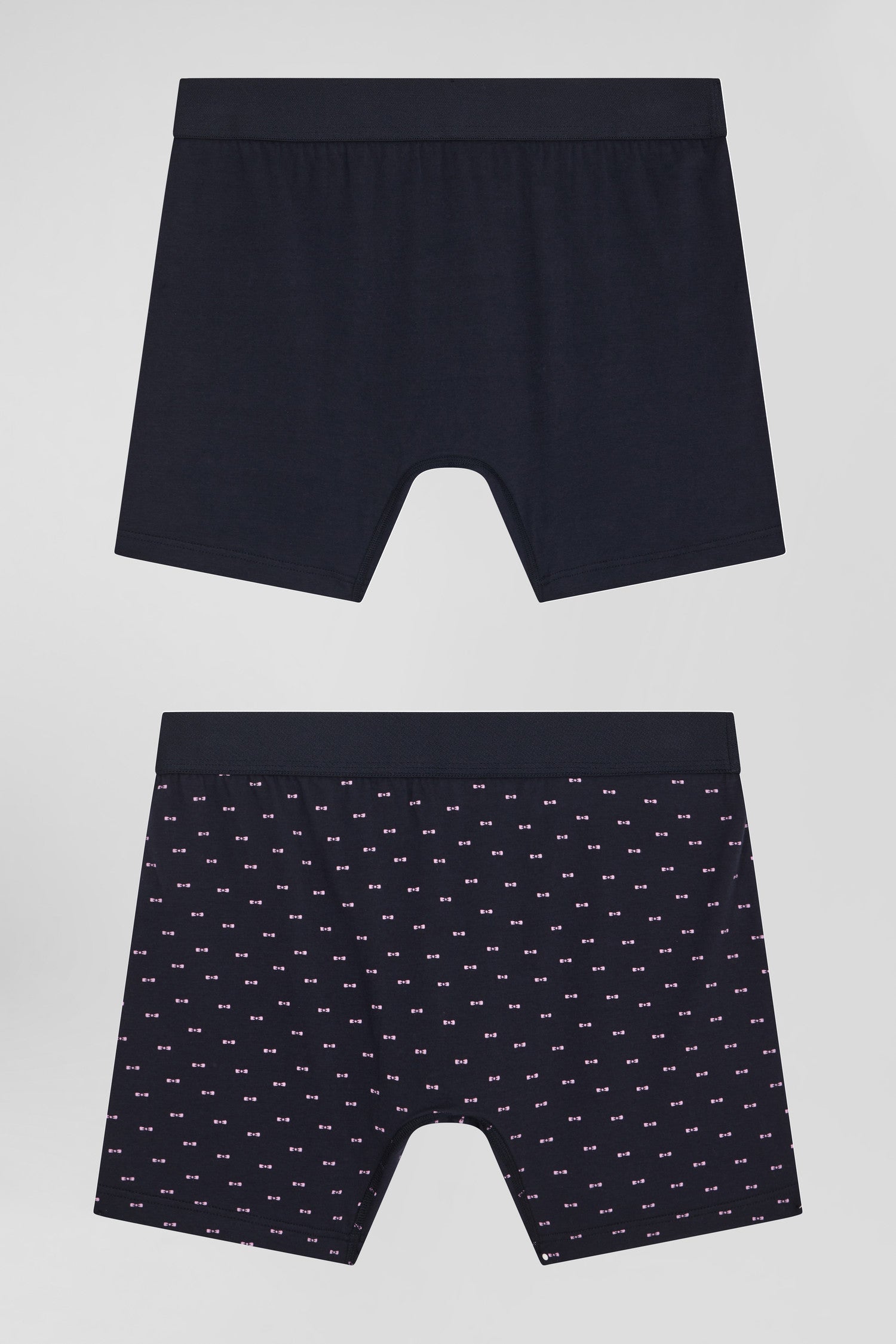 Set of 2 navy blue solid and micro pattern stretch cotton boxers