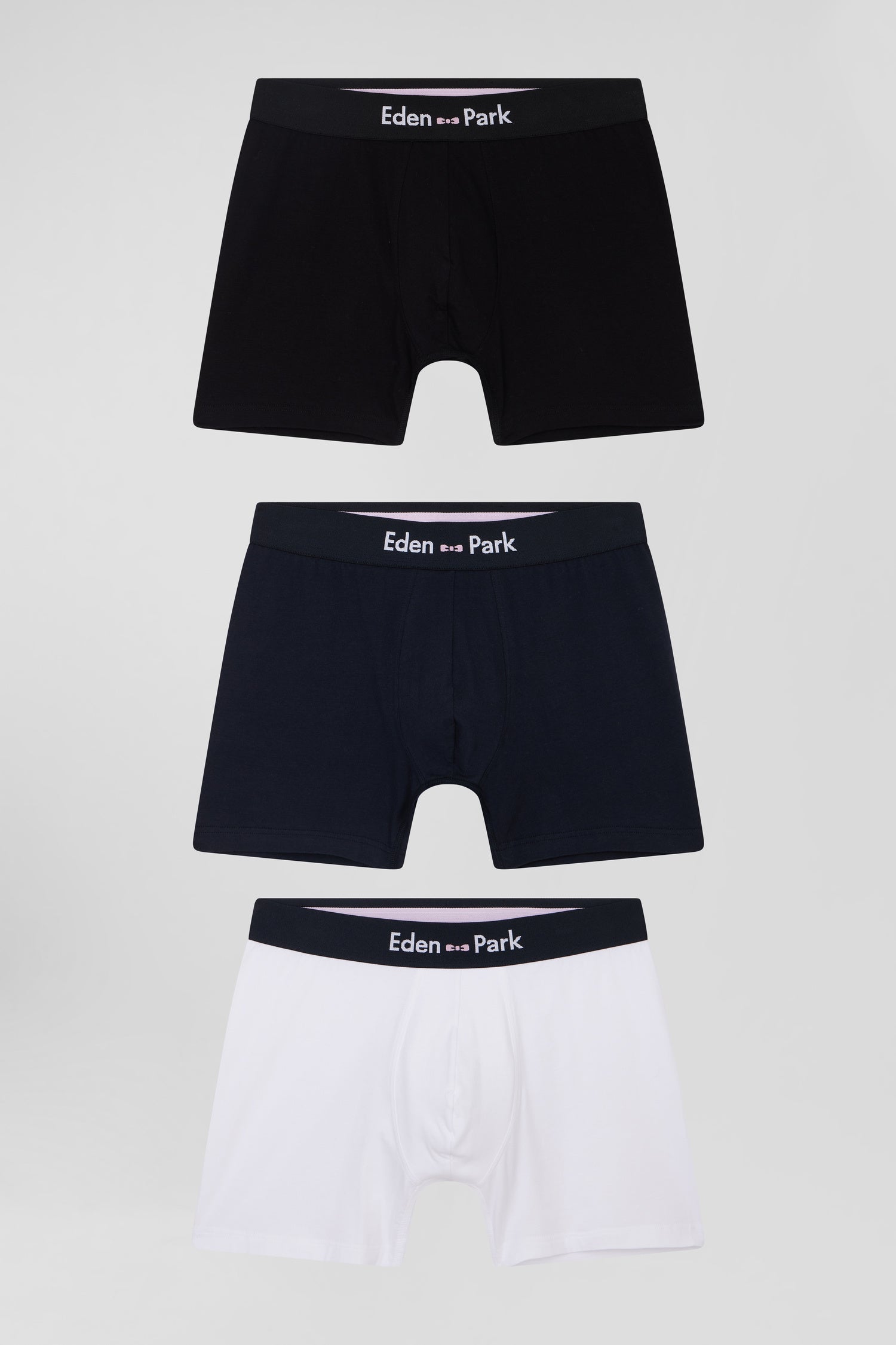 This set of three men's boxer briefs is a timeless essential for every man's wardrobe. With their Eden Park signature elasticated waistband and lined crotch, these three plain boxers combine comfort and elegance in all circumstances.