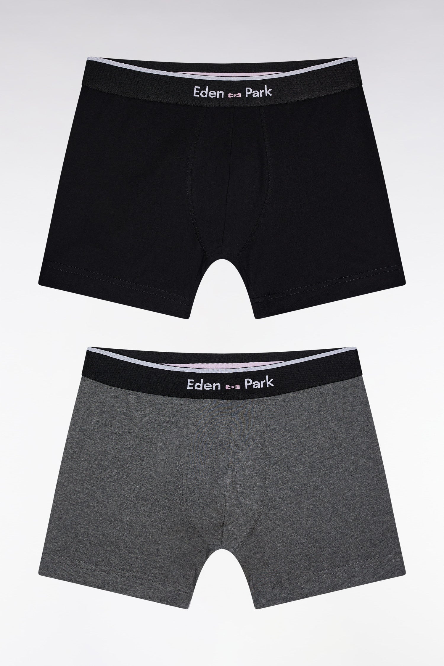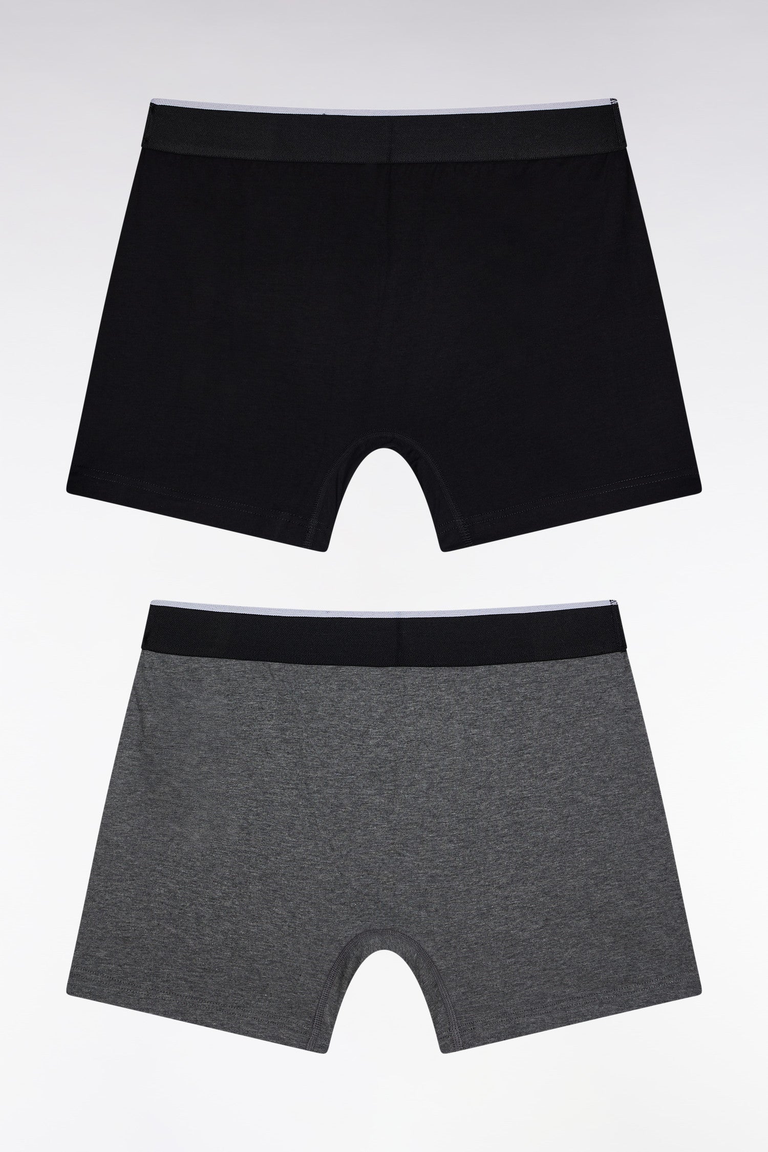 Set of two boxer shorts in black and grey stretch cotton jersey