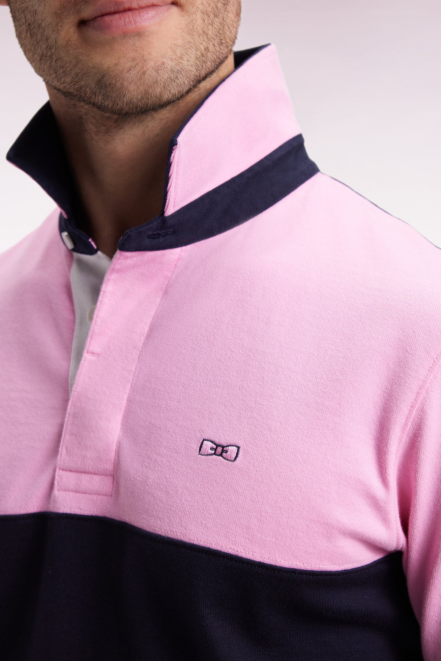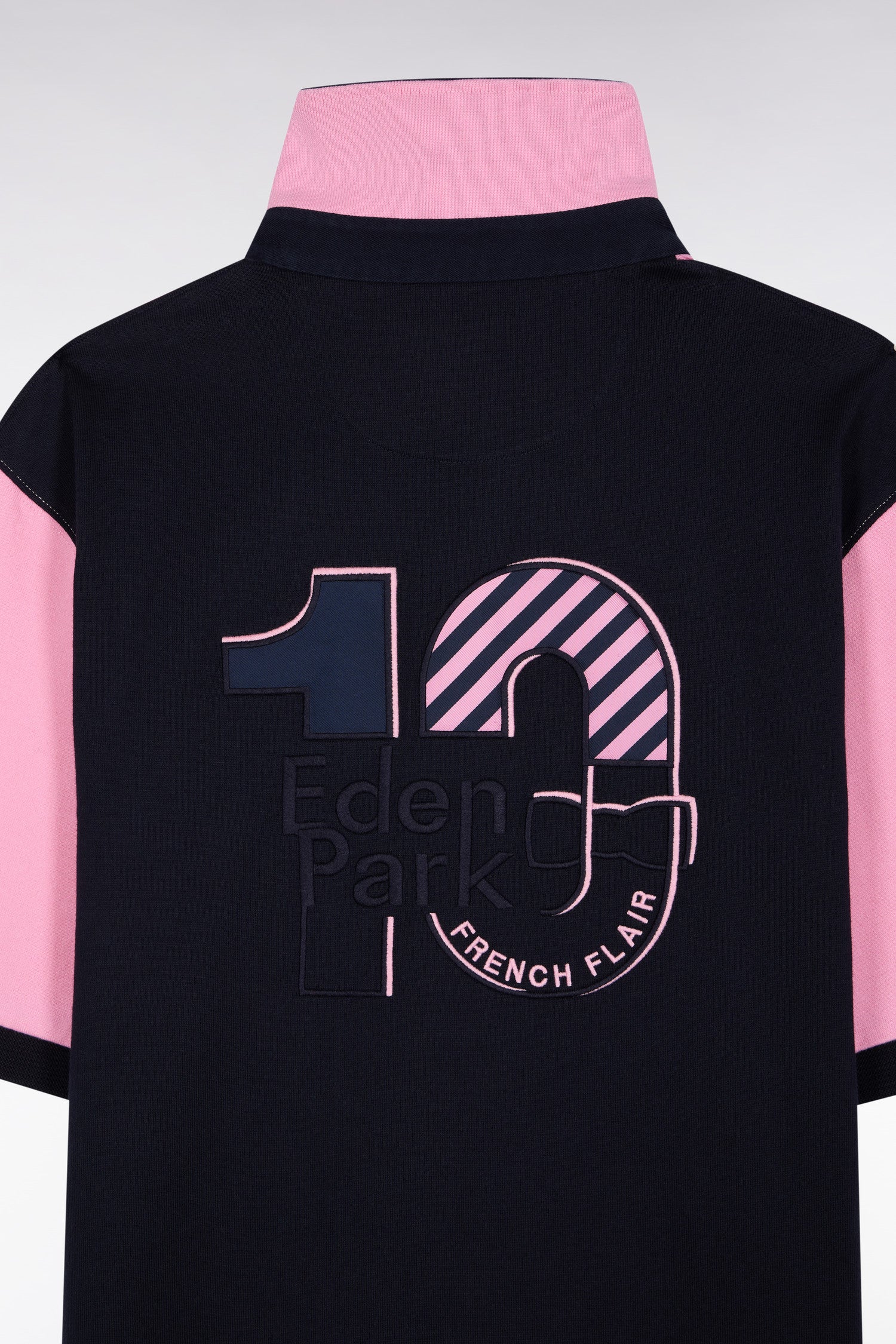 Boldly graphic, this cotton jersey rugby jersey plays on contrast with its two-tone design, alternating navy and pink panels, and large embroidery on the back. True to the Eden Park spirit, this men's urban jersey combines sporty inspiration with casual elegance, underlined by its meticulous finishing and embroidered emblem. Ideal for replacing polo shirts and T-shirts on a daily basis.