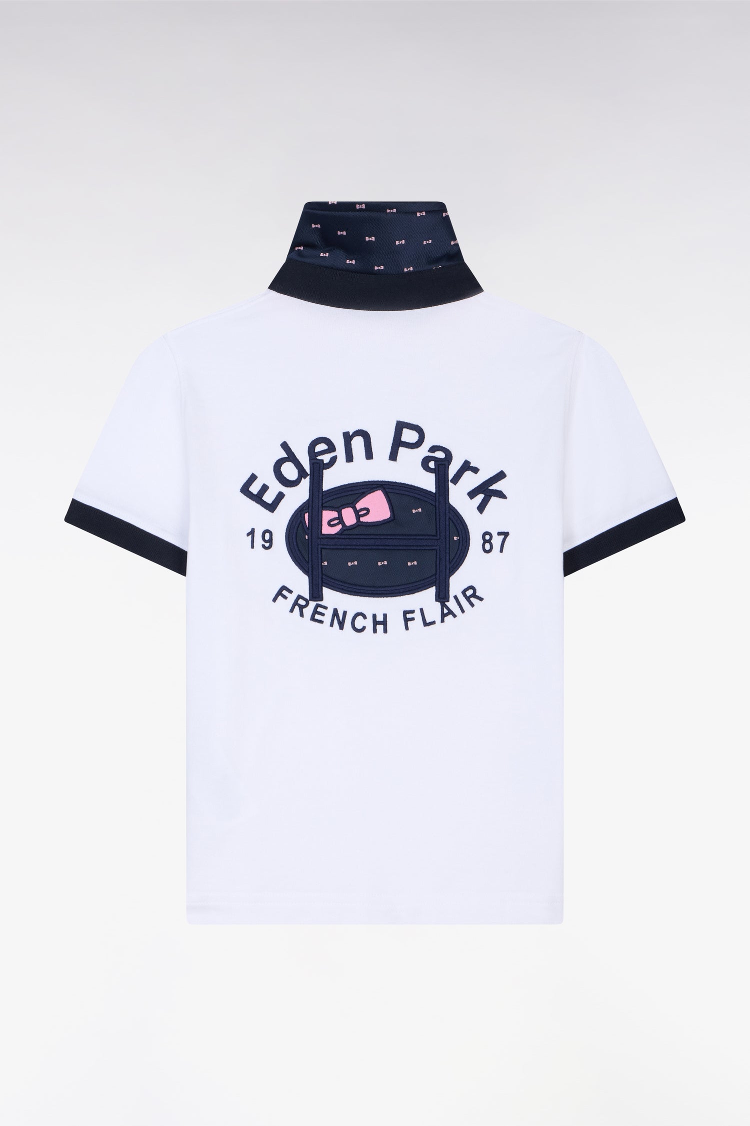 Pour ce maillot enfant à manches courtes, notre Maison a sélectionné un coton Pima, doux et résistant et une coupe droite facile à vivre. Ce modèle inspiré du vestiaire adulte reprend les codes signatures de la Maison dans une version adaptée au quotidien des plus jeunes. Le tissu cravate imprimé du nœud papillon Eden Park placé sous le col apporte une touche raffinée, visible lorsque l’enfant porte son maillot le col relevé. Une pièce pleine de caractère, confortable au quotidien.