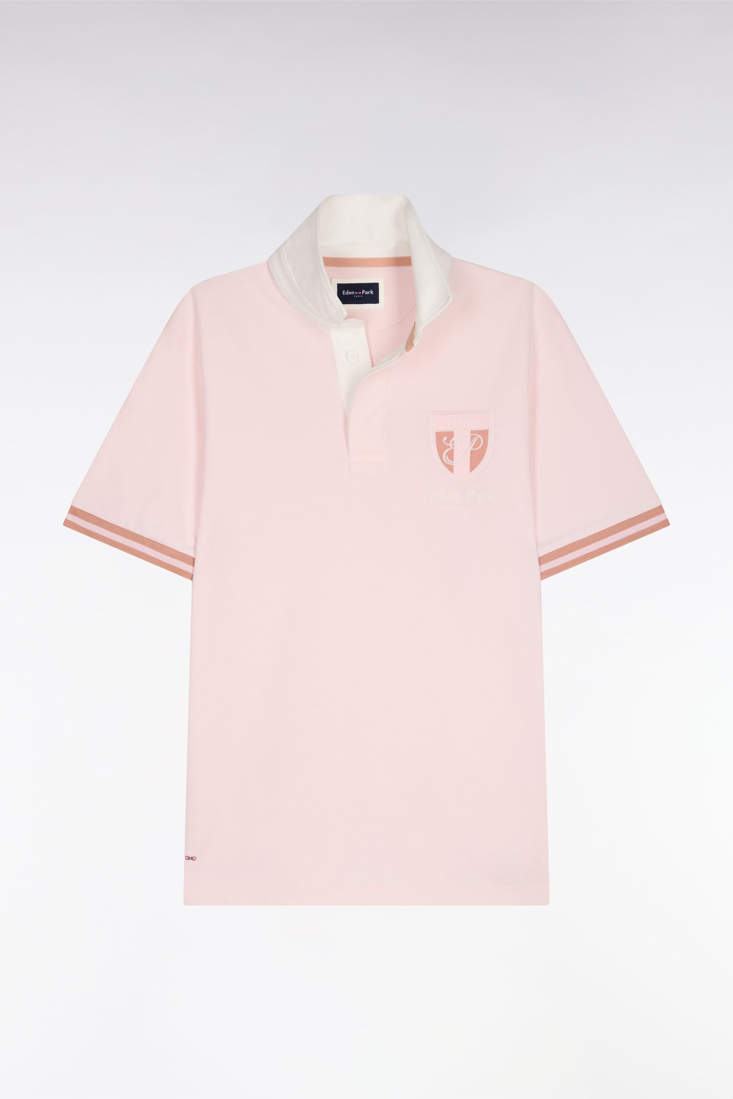 Dans une version chic revisitée dans le colorama pastel de notre ligne Héritage, ce maillot uni en jersey de coton ciel, rose ou beige met en lumière une broderie Eden Park raffinée aux accents vintage, mentionnant la date de fondation d'Eden Park. Il signe immédiatement son appartenance au vestiaire sport-chic de notre Maison française. Le col maillot structuré écru et les boutons ovales rugby complètent sa silhouette nette. Un essentiel moderne, parfait pour incarner l’élégance sportive du vestiaire masculin. À porter avec un short ou un chino pour une allure plus preppy.
