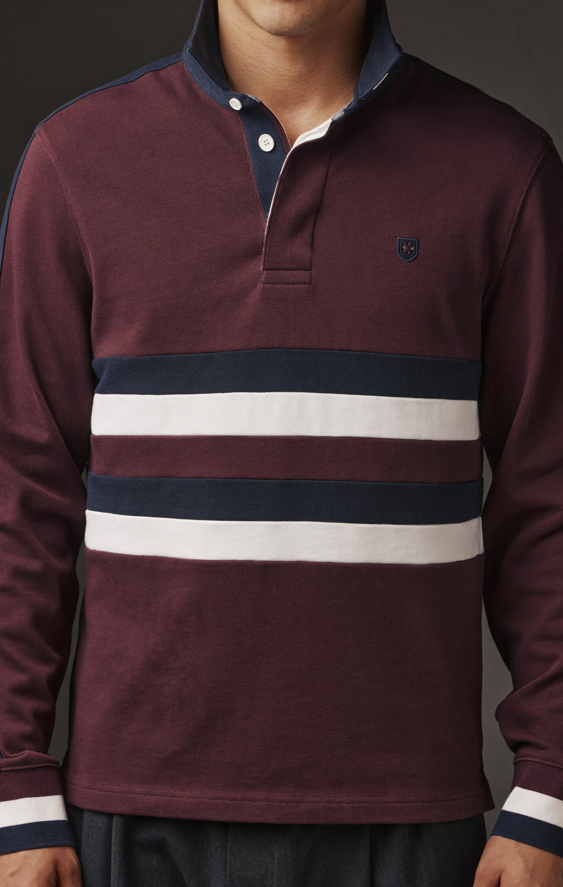 Ce maillot à manches longues bordeaux a été imaginé comme une pièce upcyclée unique, fruit du travail artisanal de notre atelier parisien. À partir d’un maillot bordeaux prélevé dans nos stocks dormants, notre cheffe d'atelier a créé une pièce exclusive agrémentée d'un double jeu de rayures horizontales créées à partir de chutes de tissus blanc et marine. Ce jeu de contrastes vient structurer la silhouette et fait subtilement écho aux finitions des poignets en bords-côtes comme au galon marine soulignant les manches. Conçu pour valoriser les matières sélectionnées par notre Maison pour son vestiaire sport-chic et prolonger leur durée de vie, ce maillot s’inscrit dans une démarche plus engagée. Disponible en un seul exemplaire en taille médium et exclusivement vendu sur notre site, il reflète le savoir-faire et l’esprit French Flair d'Eden Park.