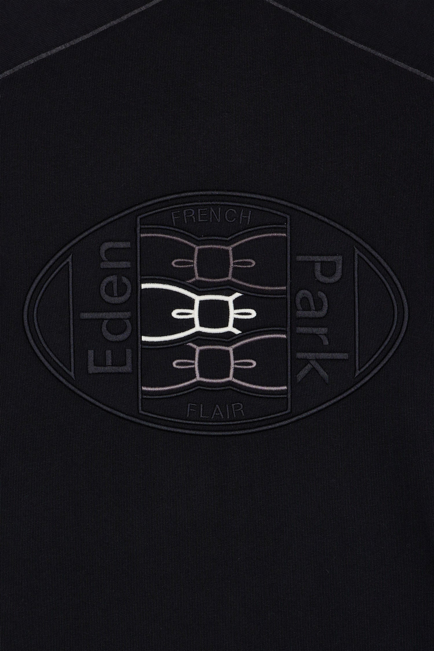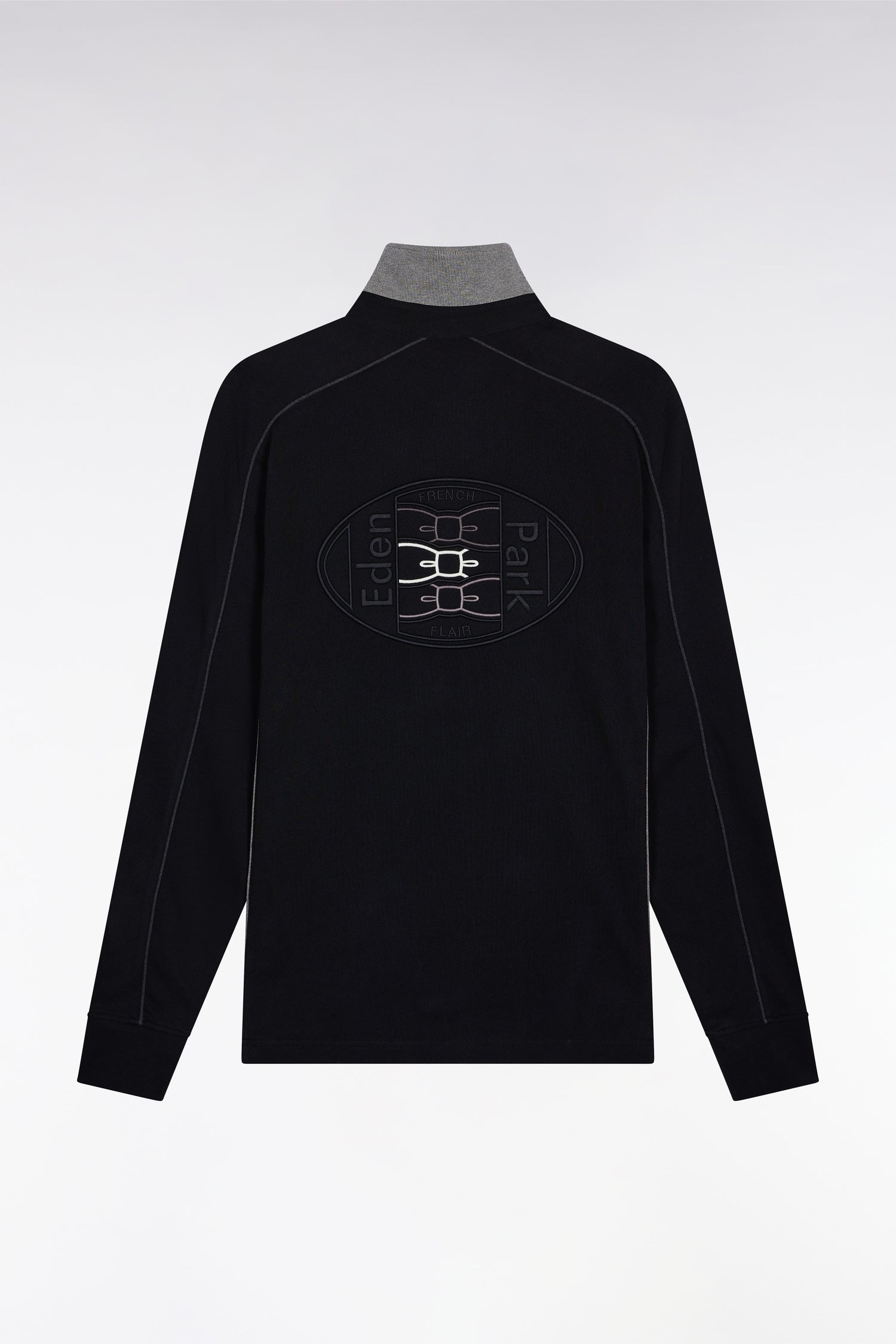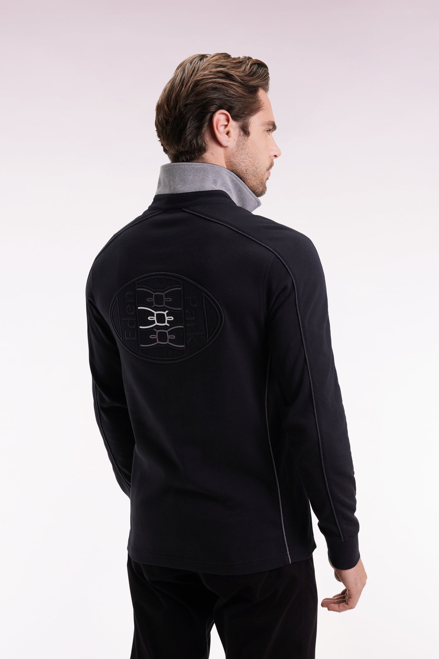Fall for this sporty-chic rugby jersey in thick cotton jersey. This long-sleeved model asserts its character with embroidery on the back, highlighted by colored piping for a graphic touch. The collar combines twill and grey rib-knit for added structure, while the tightened cuffs ensure comfort and support. A strong piece, true to the House's sport-chic DNA, offered in two timeless colors