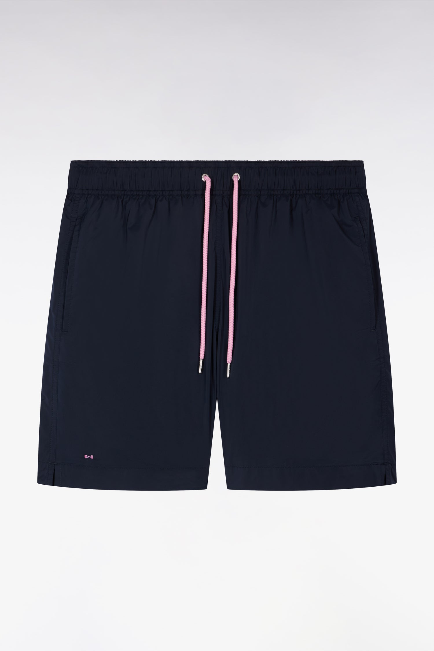 Notre maillot de bain pour homme décline l'allure sport-chic typique des collections Eden Park dans un vestiaire balnéaire construit autour d'une large palette de coloris. Sa ceinture élastiquée à intérieur contrasté et ses cordons tubulaires apportent confort, maintien et détail graphique. La broderie nœud papillon discrète sur le bas de jambe signe ce short de bain complété par une poche arrière à rabat.