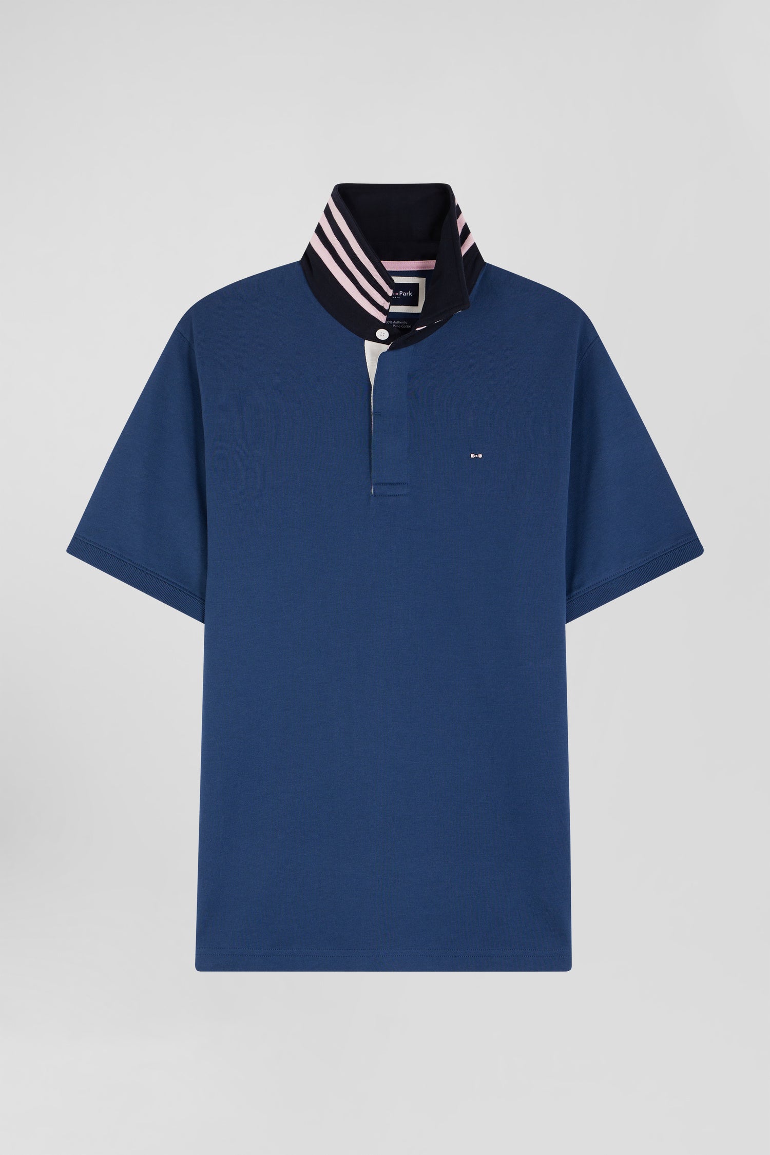 Embrace Eden Park's signature French Flair look with this men's short-sleeved jersey. Its original hue and contrasting collar, adorned with distinctive pink stripes below the collar, offer a touch of presence. The white button placket lends a sophisticated silhouette to this rugby-inspired city jersey. This model reflects unique craftsmanship, with details designed for assertive style and impeccable quality.