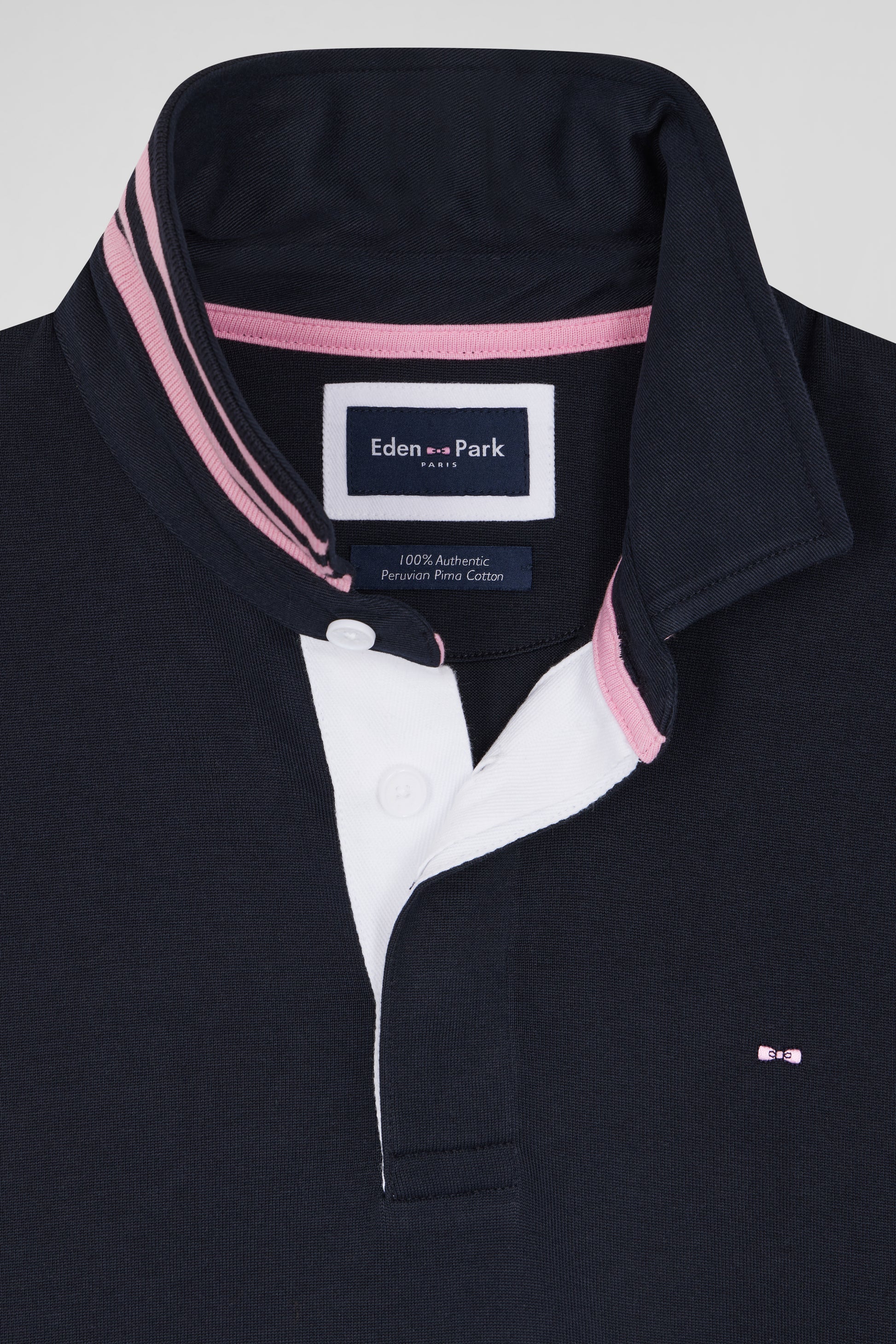 Regular navy blue cotton rugby shirt with striped undercollar