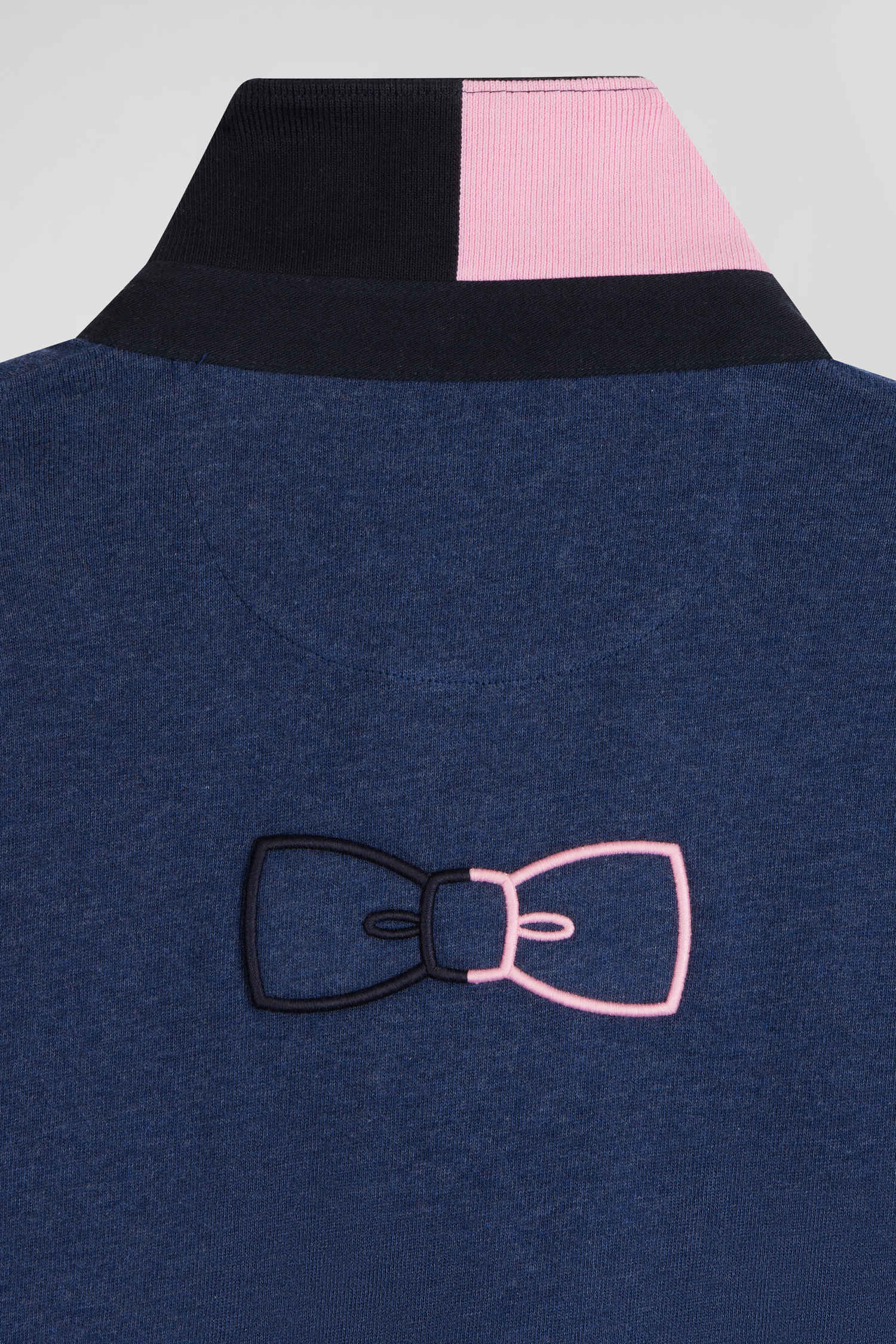 Regular navy long-sleeved cotton rugby shirt with bow tie details