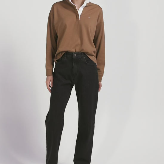 This feminine long-sleeved jersey is made from soft cotton for all-day comfort. Featuring a white jersey collar, a slightly loose Relaxed cut and elegant bow-tie embroidery at the chest, this natural-fiber jersey combines classic style with casual appeal. Available in four must-have colors for fall/winter, it fits perfectly into any wardrobe, offering versatility and elegance that last season after season.