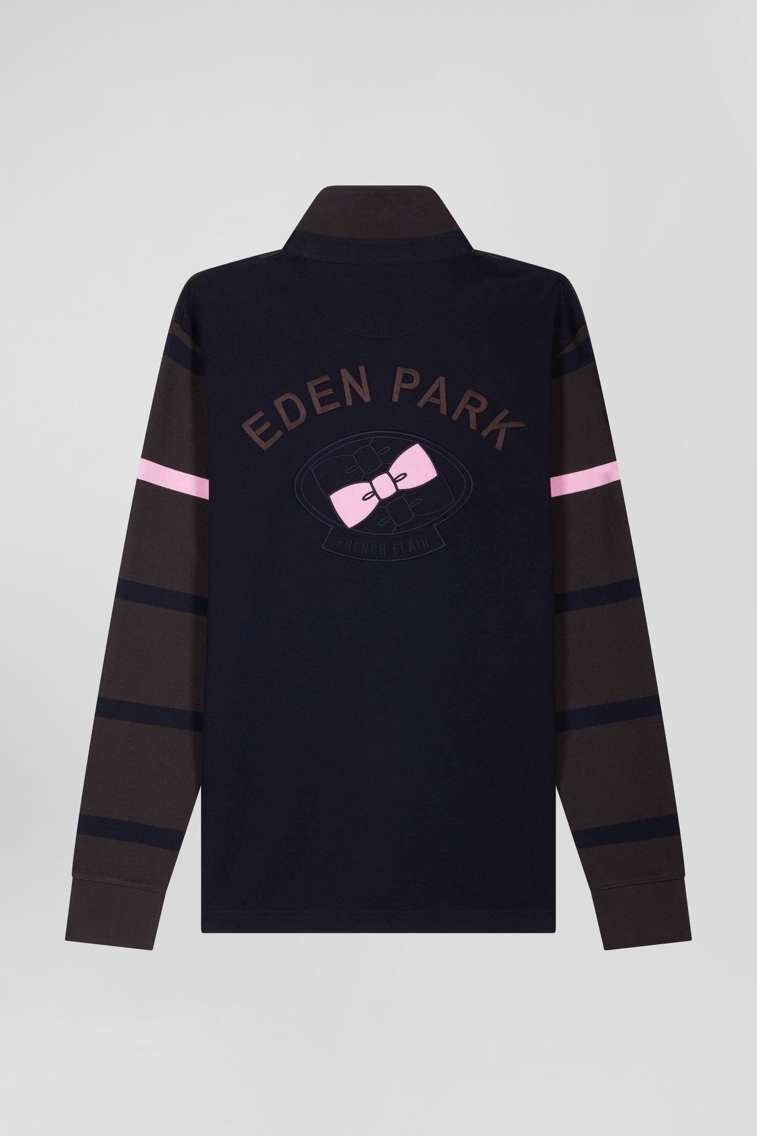 Regular brown striped long-sleeved cotton rugby shirt with back embroidery