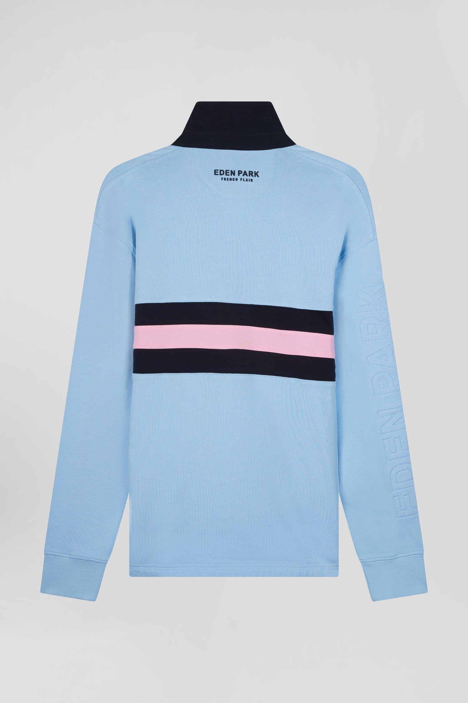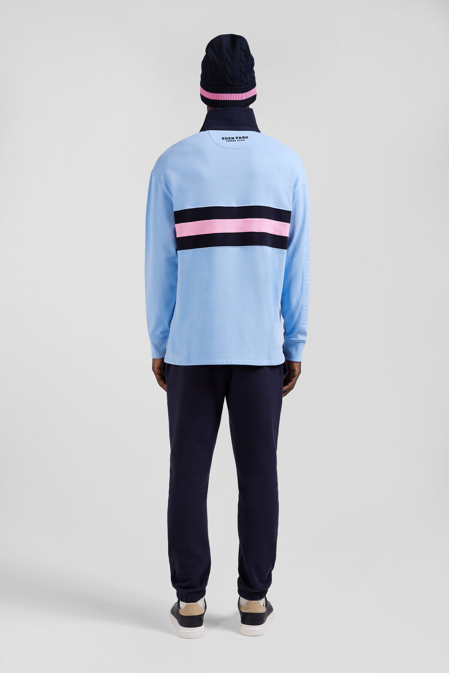 Relaxed sky blue embroidered long-sleeved cotton rugby shirt