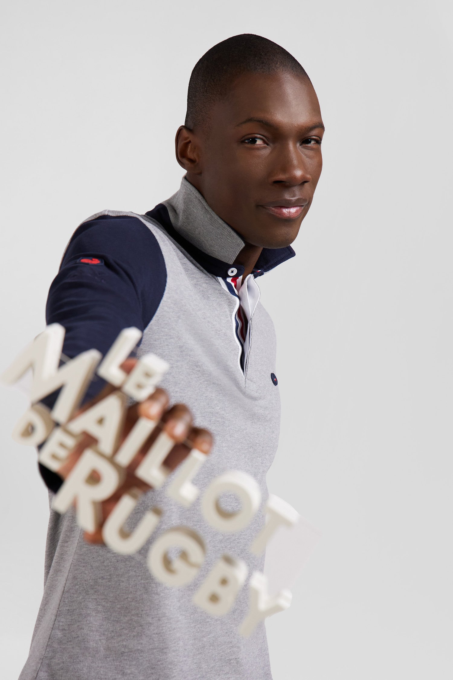 • Button placket with oval rugby buttons