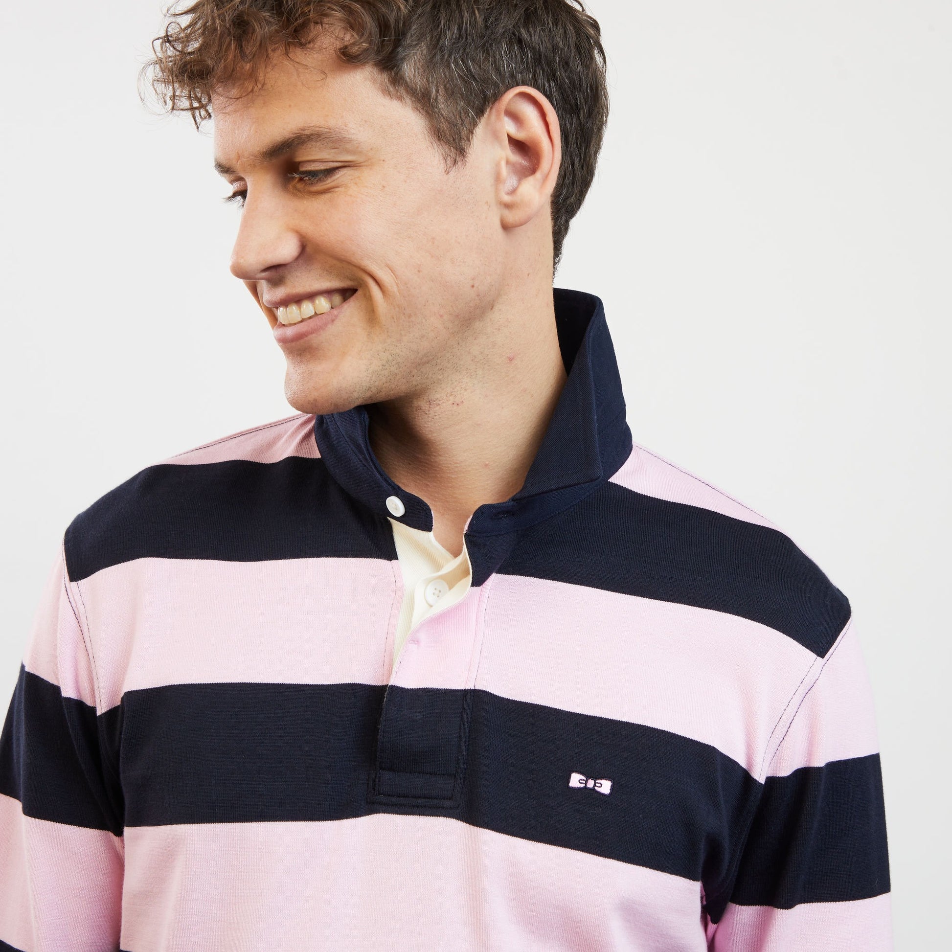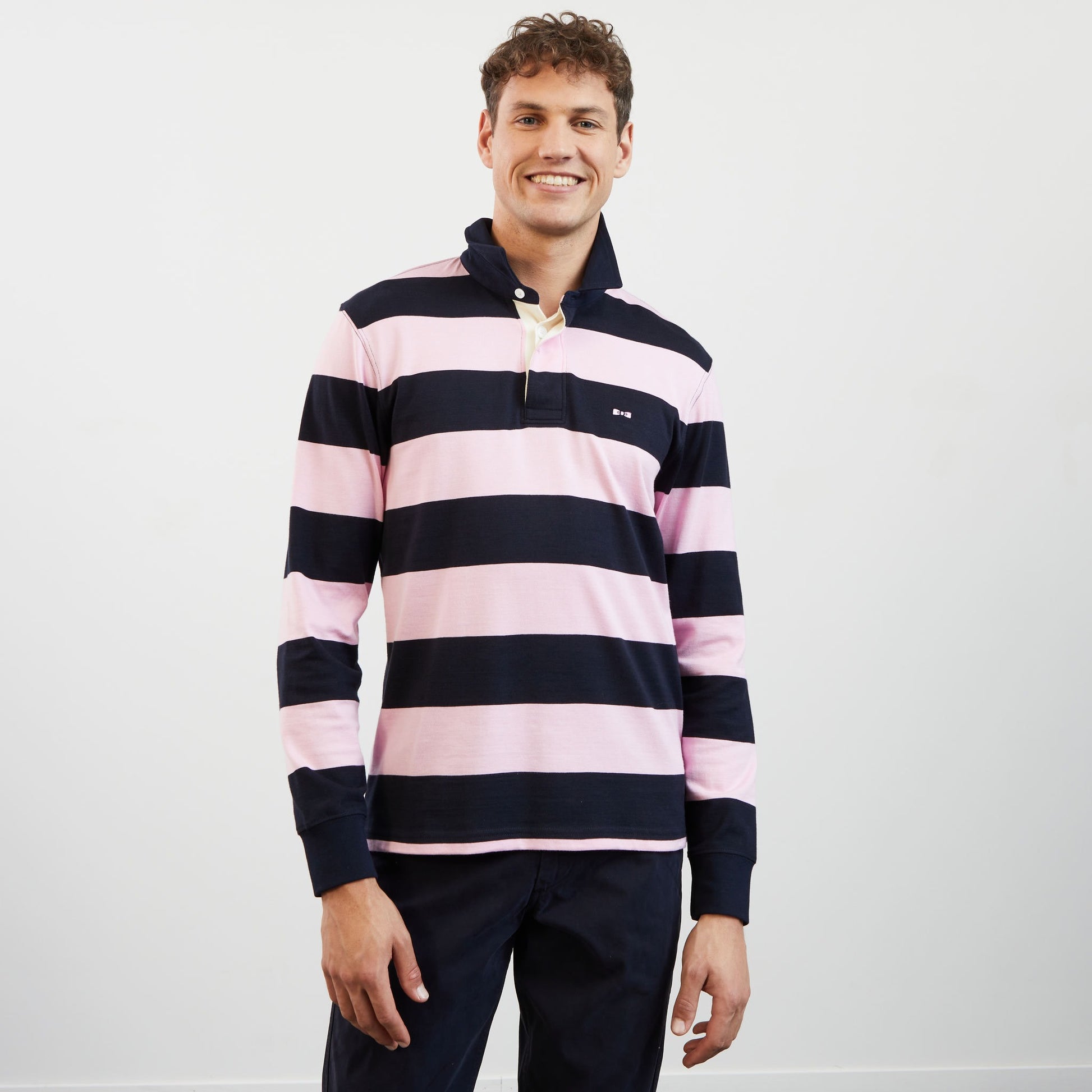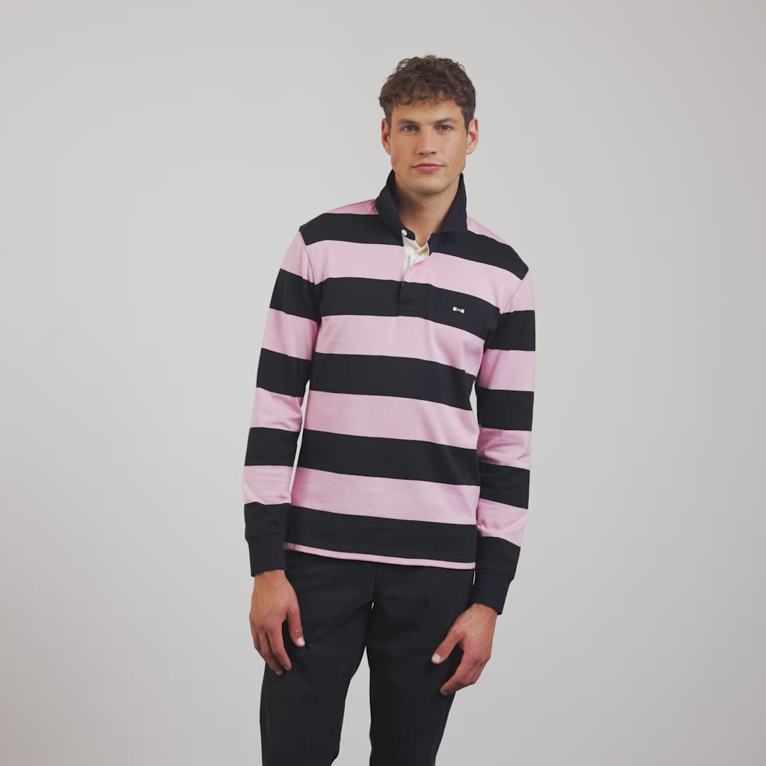 Striped pink long-sleeved rugby shirt