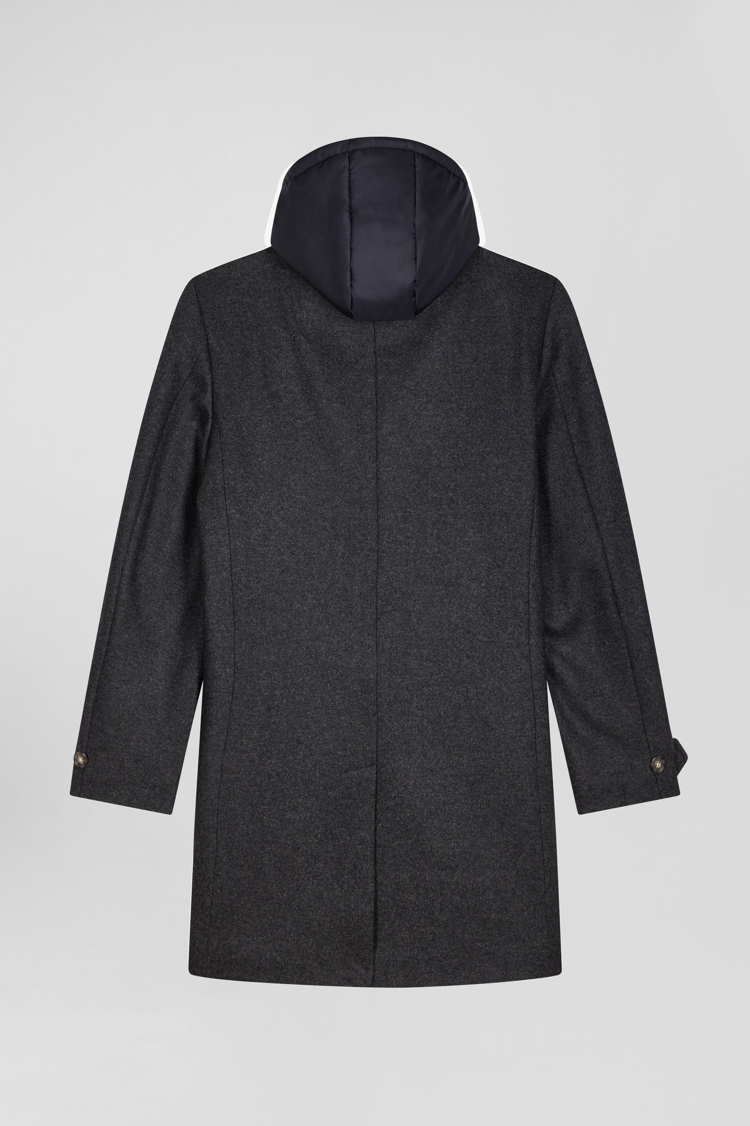 You'll be seduced year after year by the timeless elegance of this masculine straight jacket, crafted in double-faced wool jersey that combines warmth and style. A quilted trim adds a functional sport-chic touch to this coat, while the removable nylon hood offers versatility and protection. The interior, lined in plain nylon, ensures optimum comfort and insulation. The Eden Park three-button closure and two welt pockets on the outside enhance the refined look. Inside, two double welt pockets with button closure offer practicality and security. The distinctive detail? A felt badge with bow embroidery under the collar, subtly asserting our Maison's identity. This winter coat is perfect for men looking to combine functionality and elegance.