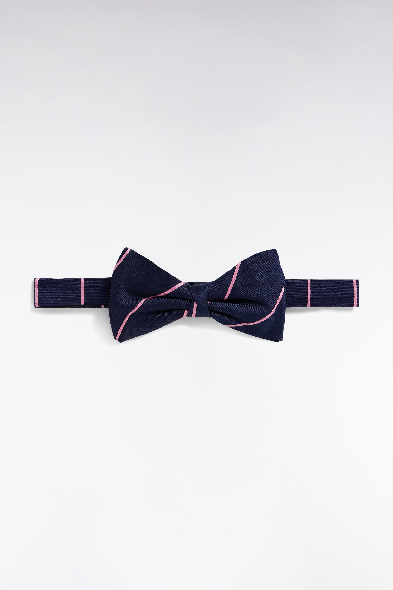 Noeud papillon en soie marine à rayures roses
