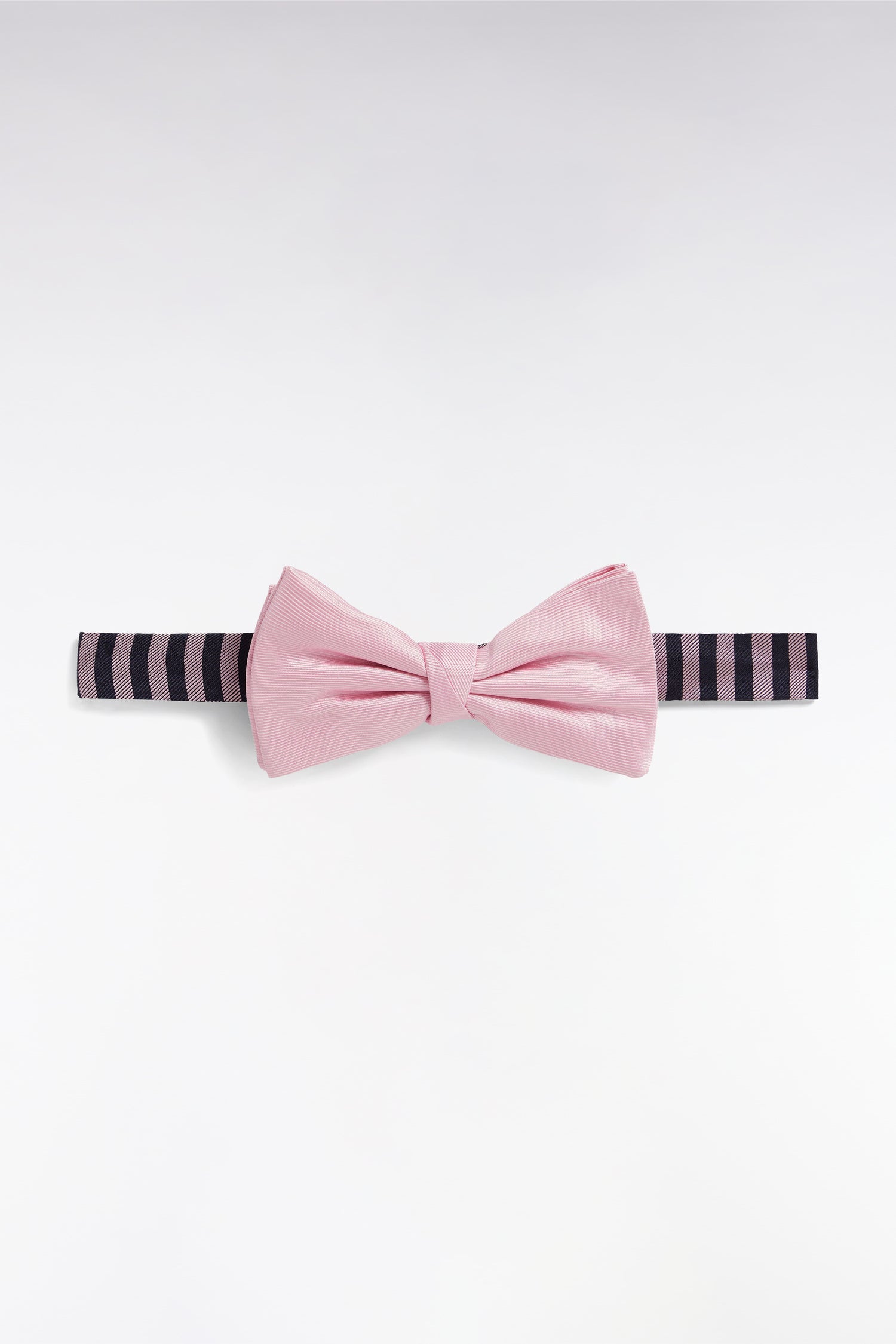 Noeud papillon en soie rose à collier rayé