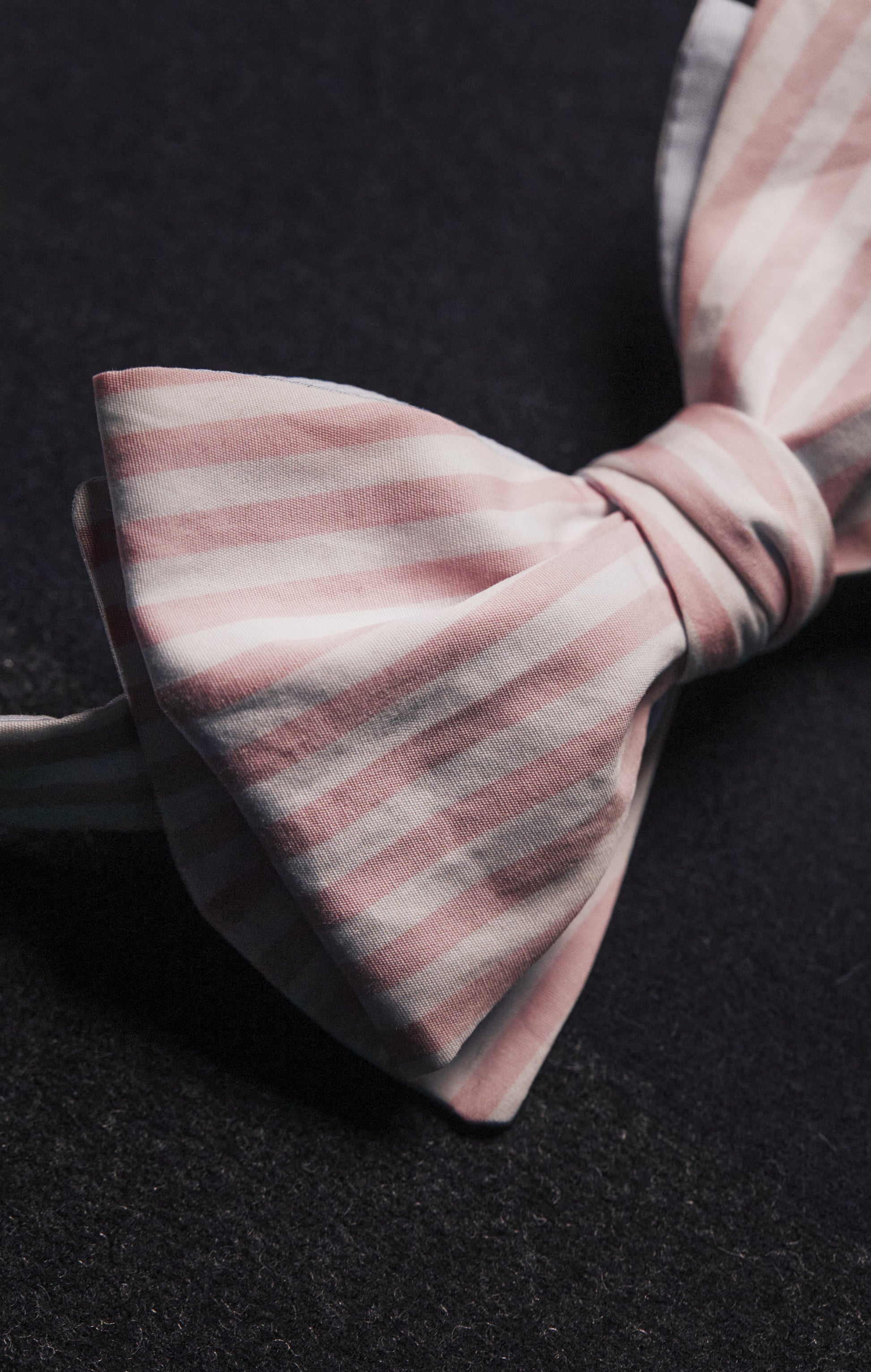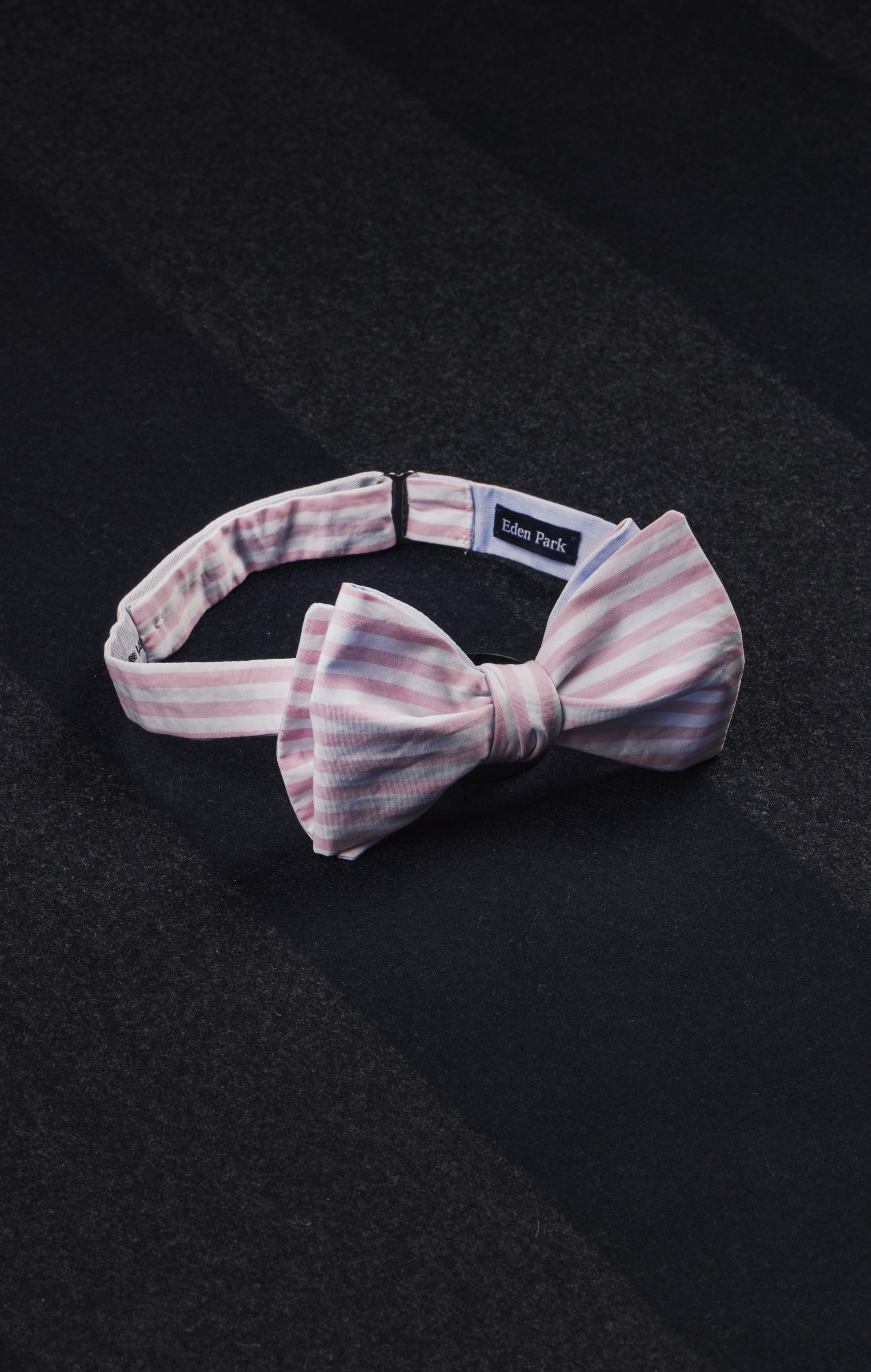 Handcrafted in a pink and white striped fabric carefully selected from our dormant stocks, this bow tie ensures modern, refined style. Its stripes underline the bold, elegant casualness of the Maison's wardrobe, while extending the life of our top-of-the-range fabrics. Part of the Pap'Atelier capsule and available online in a very limited edition of just one, this accessory combines style with a commitment to more sustainable fashion. Every detail, from the Eden Park label to the pre-assembled fastener, reflects the attention paid to finishing touches to ensure impeccable looks and greater comfort, whether for everyday wear or a formal event.