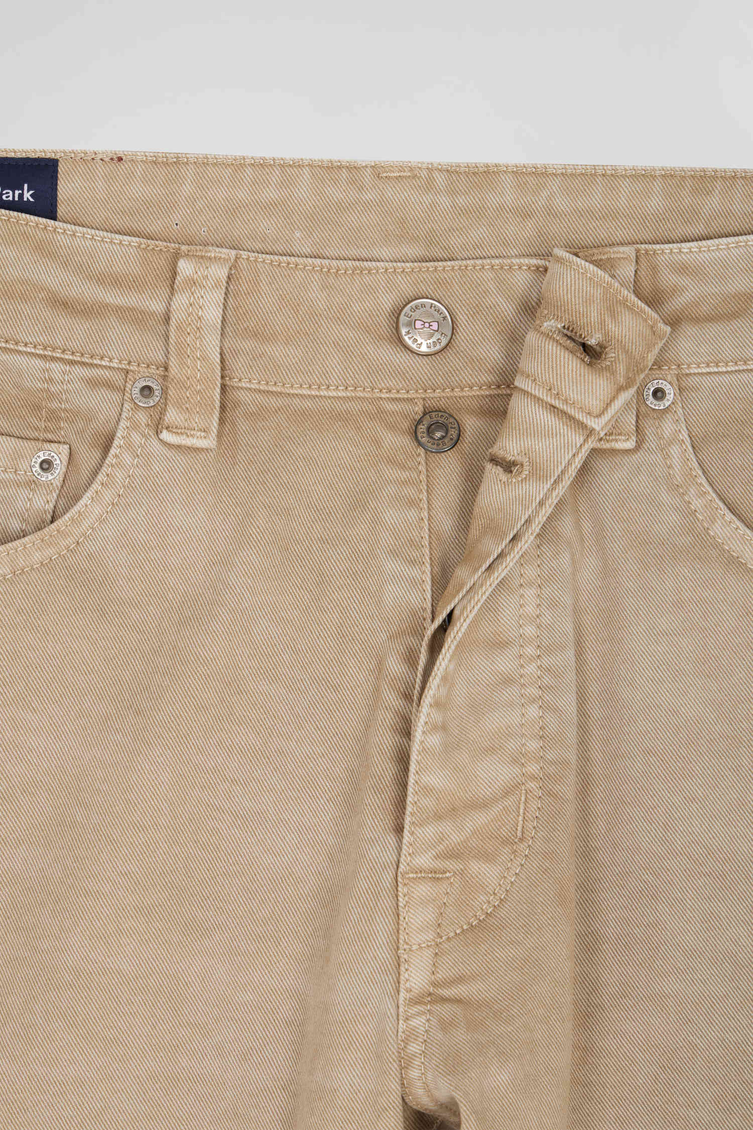 Regular hemp-coloured stretch cotton 5-pocket trousers