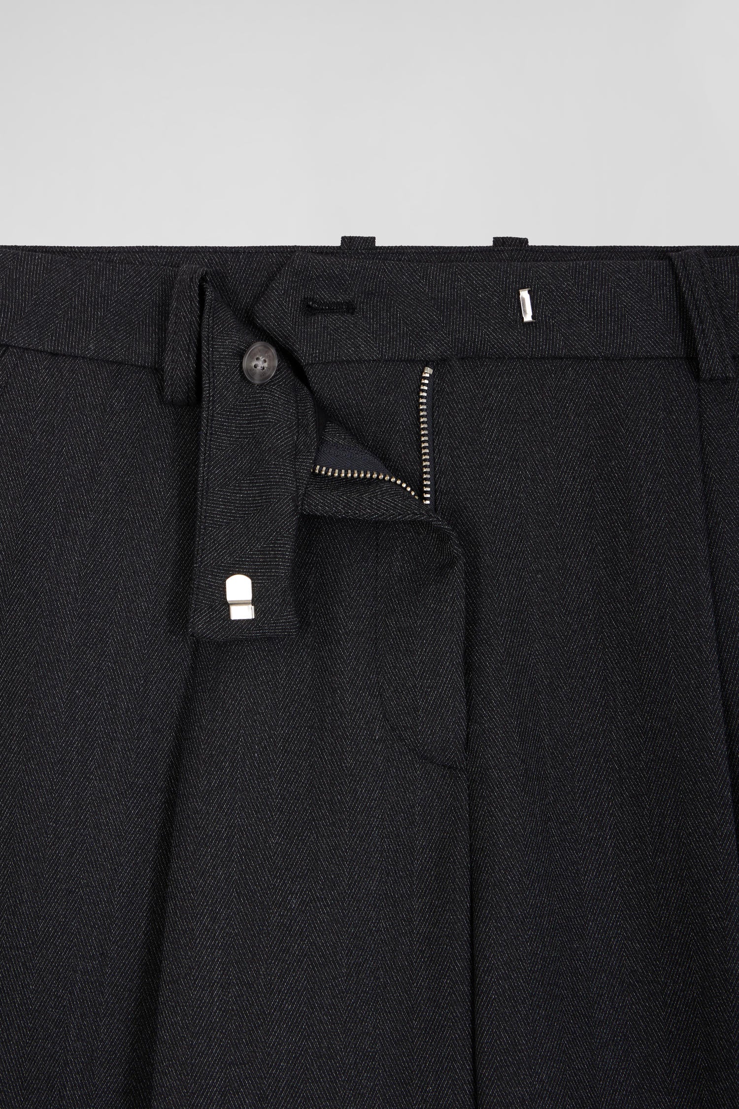 These elegant plaid pants, available in charcoal gray or navy, feature a relaxed, slightly high-waisted, flared cut. Featuring Italian pockets, welt back pockets and belt loops, these pants combine style and comfort. Perfect for a sophisticated everyday look, they can be easily adapted to a variety of occasions.
