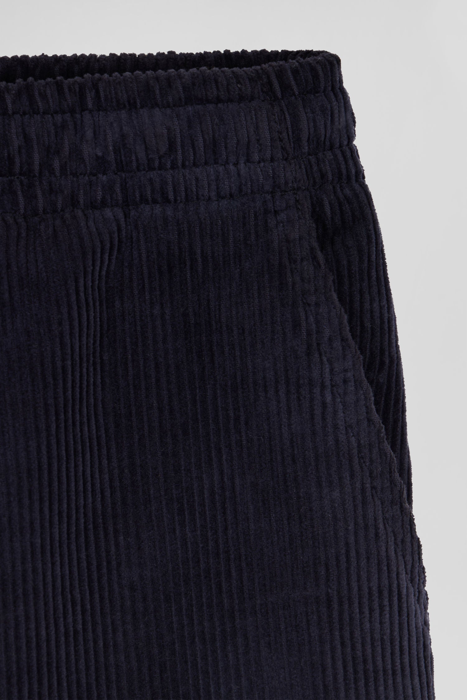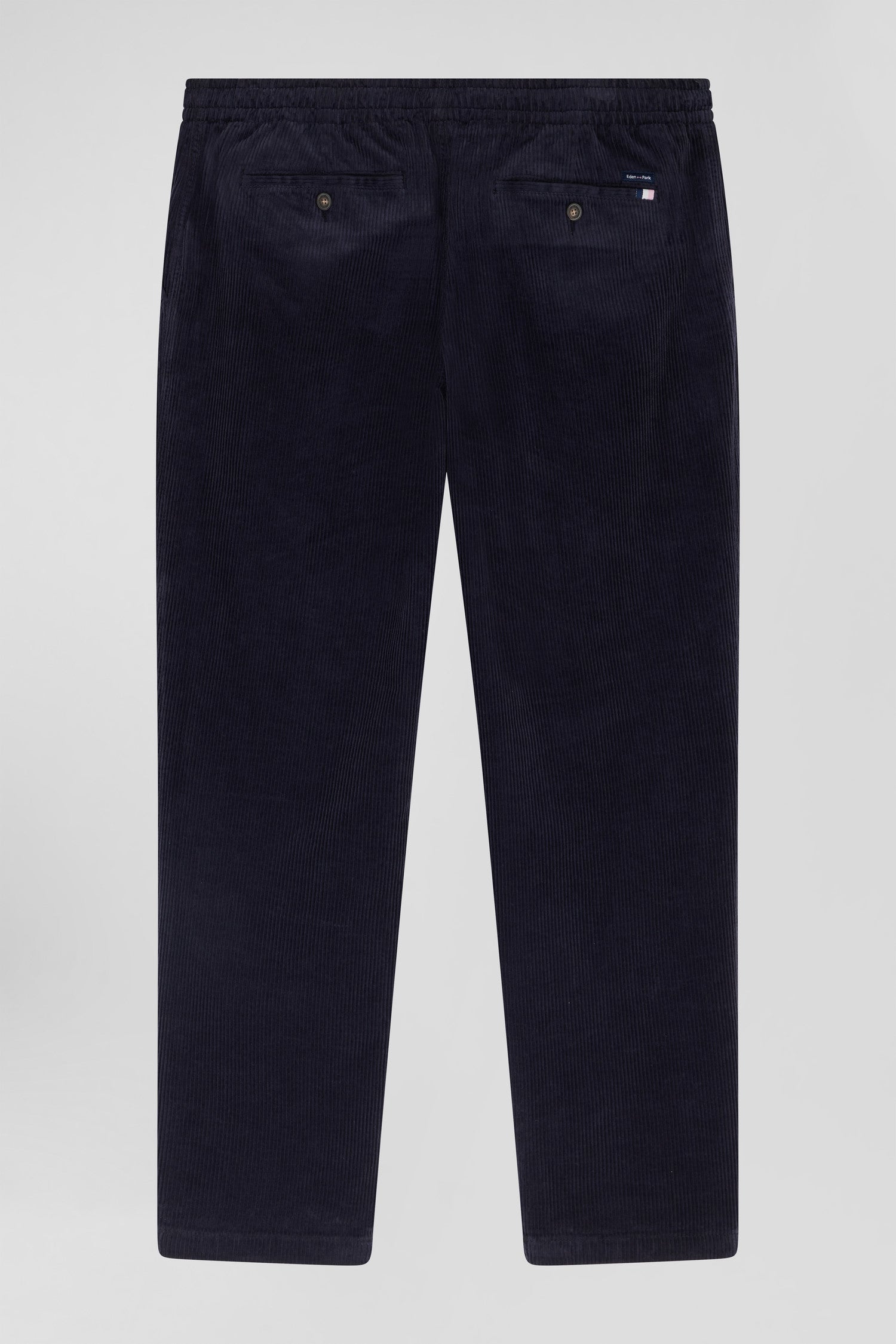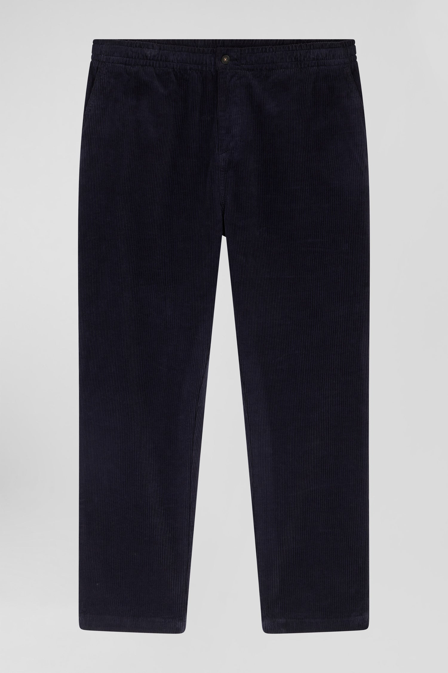 Modern navy blue stretch cotton elastic waist trousers