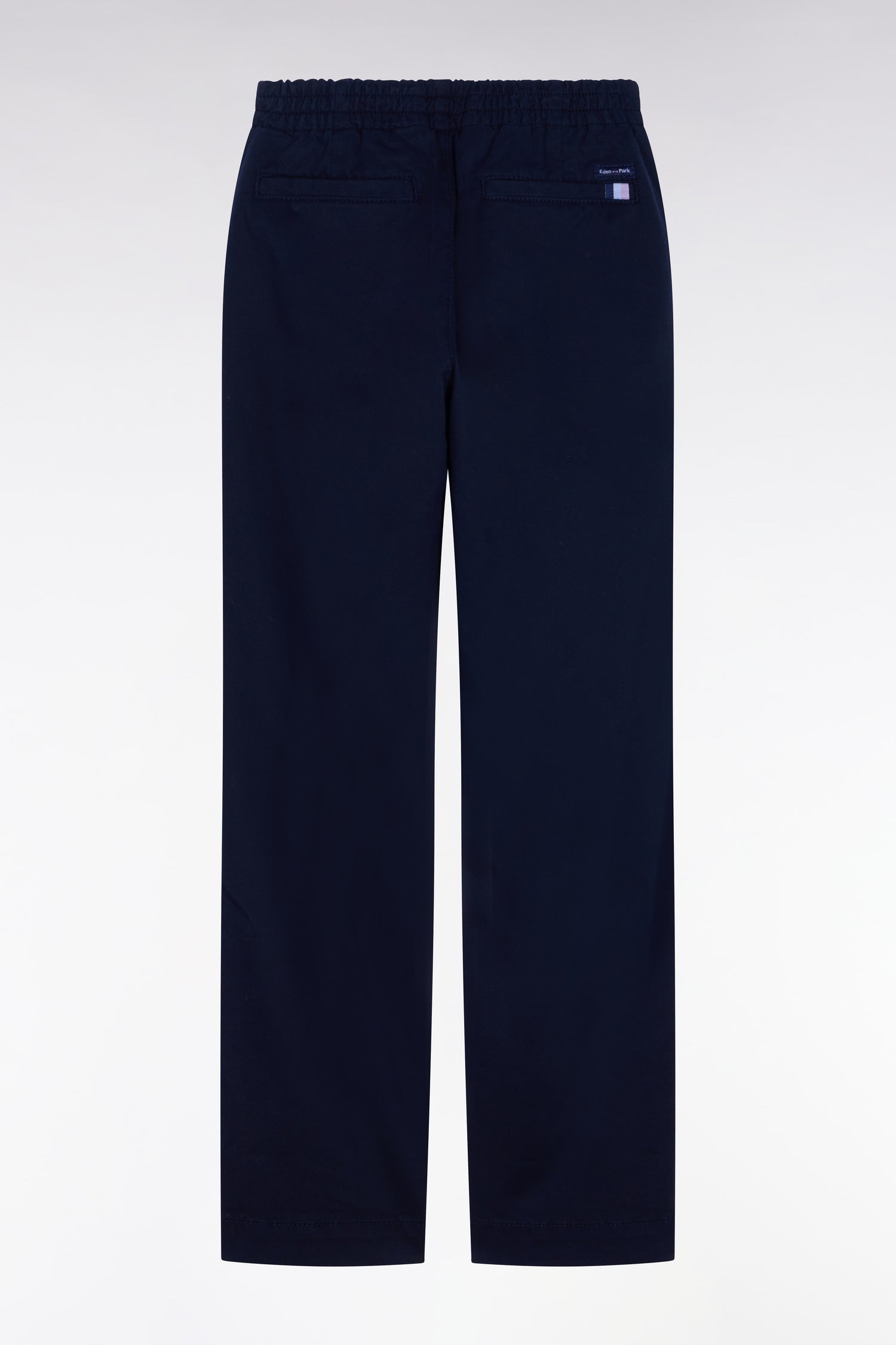 Ce chino marine adopte une ligne épurée et confortable grâce à sa taille élastiquée, idéale pour accompagner les mouvements des plus jeunes. Ses poches arrières passepoilées et sa griffe personnalisée au dos reprennent les codes du vestiaire des grands dans une version enfant soignée. Un essentiel chic et confortable facile à associer, pour l’école comme pour le week-end.